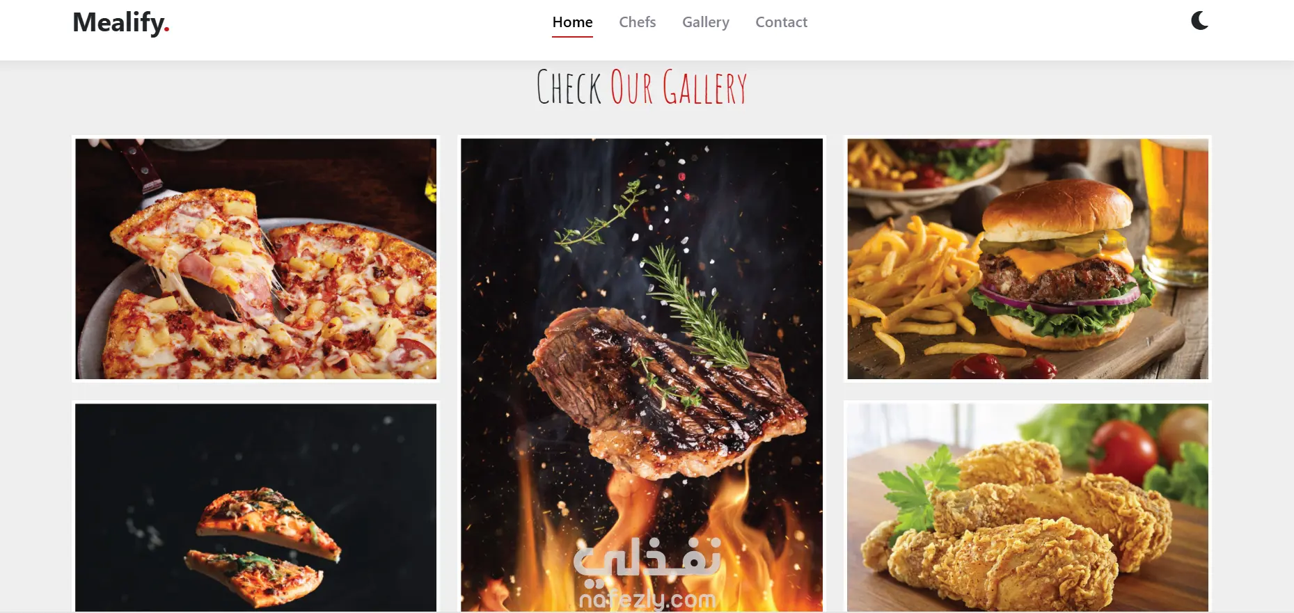 قمت بتصميم وتطوير موقع ويب احترافي لمطعم تحت اسم Mealify، وهو عبارة عن صفحة هبوط (Landing Page) تعرّف بخدمات المطعم وقائمة الطعام بطريقة جذابة وسهلة التصفح.