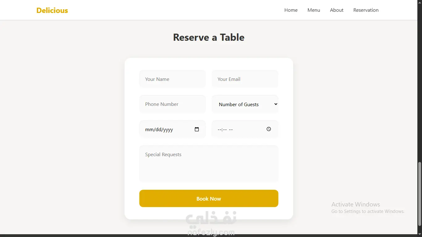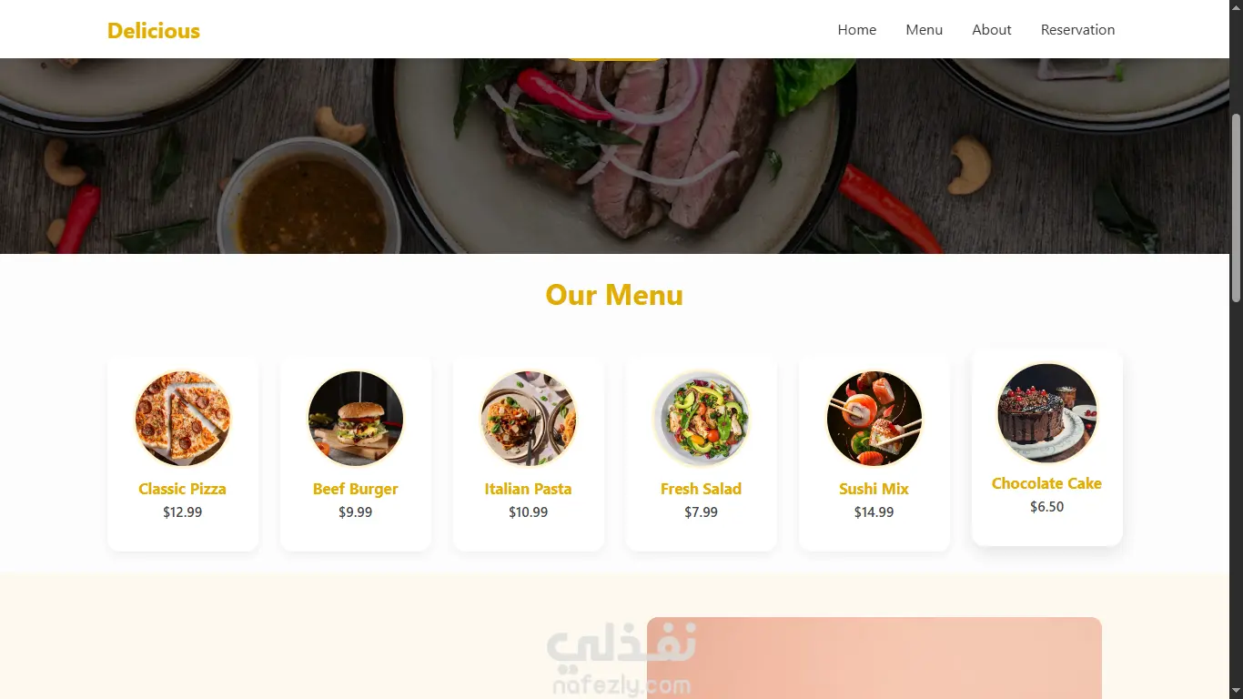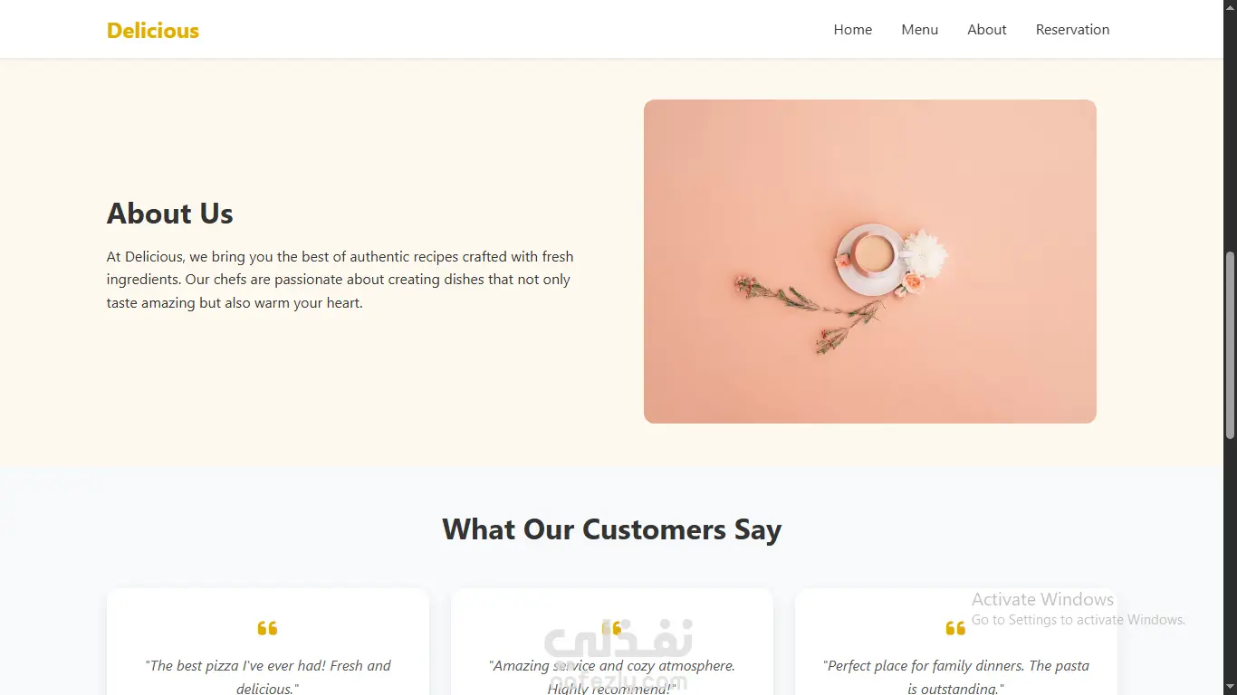 قمت بتصميم وتطوير موقع إلكتروني لمطعم باستخدام HTML, CSS, وBootstrap، مع التركيز على واجهة أنيقة ومتجاوبة تعمل بسلاسة على مختلف الأجهزة. حرصت على إبراز هوية المطعم من خلال تصميم بسيط وجذاب، يعرض الأقسام الأساسية مثل: قائمة الطعام، نبذة عن المطعم، والخدمات. الهدف من العمل كان تقديم تجربة مستخدم مريحة وسهلة التصفح، مع مظهر عصري يعكس جودة العلامة التجارية.