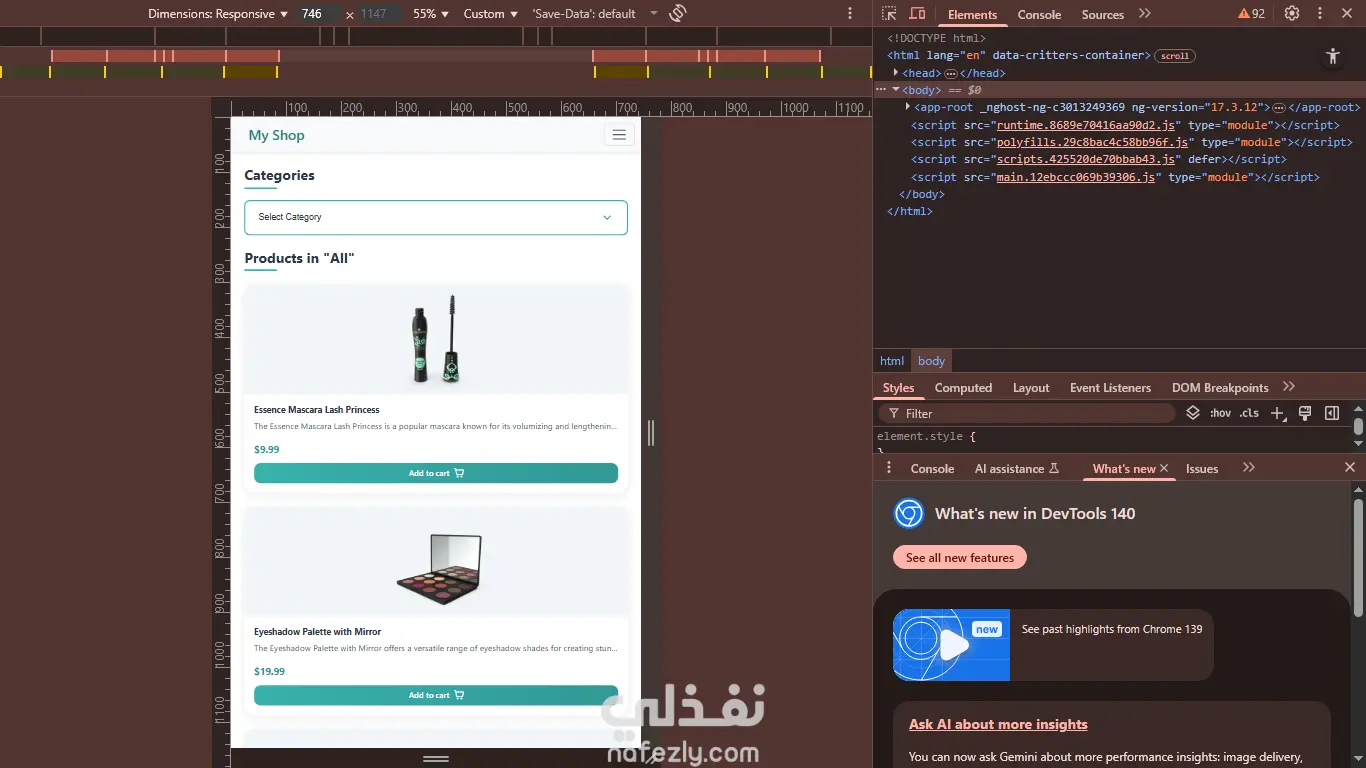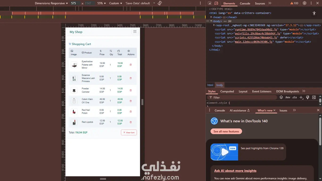 مشروع متكامل لتصميم وتطوير سلة مشتريات إلكترونية باستخدام Angular وBootstrap وprimeNg.