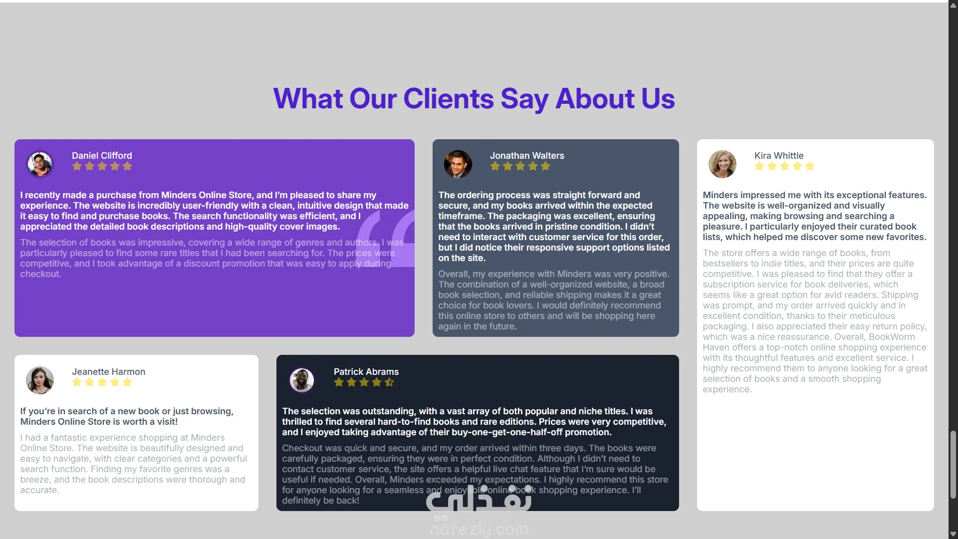 تم تطوير موقع إلكتروني متكامل لبيع الكتب عبر الإنترنت، يهدف إلى توفير تجربة تسوق سهلة وممتعة للقراء. يجمع الموقع بين التصميم الجذاب والوظائف المتقدمة التي تلبي كافة احتياجات المستخدم، بداية من استعراض الكتب وحتى إتمام عملية الشراء. أهم مميزات الموقع: بيشتغل على جميع البلاتفورمز موبايلات و تابات ولابات (responsive design) تصفح سهل للكتب: واجهة مستخدم بسيطة تتيح للزوار استعراض الكتب بسهولة من خلال أقسام وتصنيفات متنوعة (روايات، تاريخ، تطوير ذاتي، إلخ). معلومات عن الكاتب وقصة الكتاب عروض وكتب مميزة: قسم خاص بالكتب المضافة حديثًا ليبقى المستخدم على اطلاع بكل ما هو جديد. صفحة مخصصة للعروض والخصومات الحصرية لجذب العملاء. نظام سلة التسوق: إمكانية إضافة الكتب إلى سلة المشتريات وتحديد الكمية المطلوبة لكل كتاب. ملخص فوري للمشتريات والتكلفة الإجمالية في السلة. قائمة المفضلة (Wishlist): يستطيع المستخدمون المسجلون إضافة الكتب التي تعجبهم إلى قائمة "المفضلة" للعودة إليها لاحقًا. نظام دفع مرن وآمن: إتمام عملية الشراء بسهولة من خلال خيارات دفع متنوعة تشمل: الدفع ببطاقات الفيزا والماستركارد. الدفع عند الاستلام (كاش). إدارة حسابات المستخدمين: نظام تسجيل دخول وإنشاء حساب جديد (Sign in / Sign up) لحفظ بيانات المستخدمين وتاريخ طلباتهم وقائمة المفضلة. التواصل المباشر: صفحة "تواصل معنا" تحتوي على نموذج اتصال مباشر ورقم هاتف وبريد إلكتروني، لتسهيل تواصل العملاء مع إدارة الموقع للاستفسارات أو الدعم الفني.