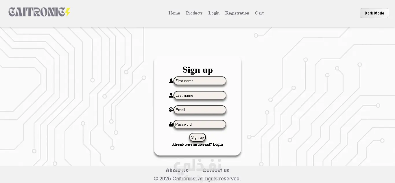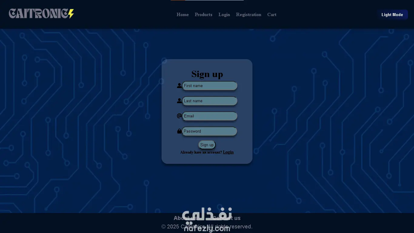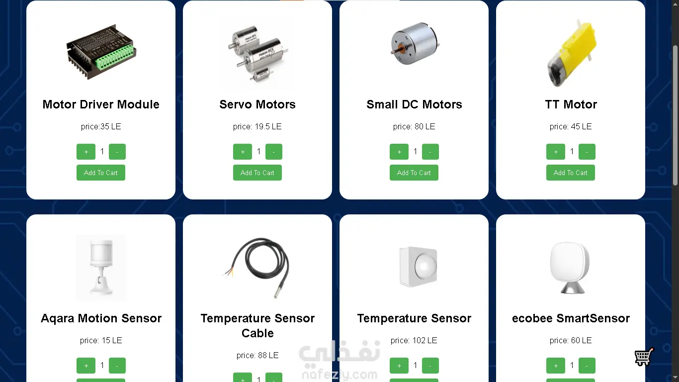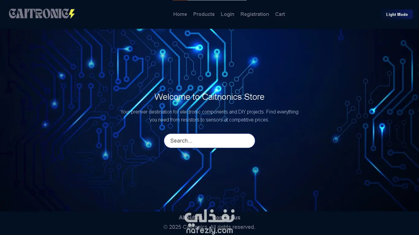 موقعي هو متجر إلكتروني متخصص في بيع قطع وأدوات الإلكترونيات المختلفة، حيث يوفّر تجربة تسوّق سهلة وسريعة للمستخدمين. يضم المتجر مجموعة واسعة من المنتجات مثل المقاومات، البطاريات، البازرز، الأزرار (Push Buttons)، وأدوات أخرى متنوعة يحتاجها المهتمون بالإلكترونيات والهاردوير. تم تصميم الموقع بواجهة بسيطة وعصرية تتيح للزائر التنقّل بسهولة بين الأقسام المختلفة، حيث ينقسم المتجر إلى عدة أقسام رئيسية، وكل قسم يحتوي على مجموعة من العناصر مع تفاصيلها الكاملة. كما يحتوي الموقع على صفحات أساسية مثل: الصفحة الرئيسية (Home): لعرض لمحة عامة عن المتجر وأهم المنتجات. صفحة المتجر (Store): مقسّمة إلى أقسام رئيسية ليسهل على المستخدم الوصول إلى ما يحتاجه بسرعة. صفحة عربة التسوّق (Cart): لعرض المنتجات التي اختارها المستخدم مع إمكانية تعديل الكمية أو حذف العناصر. صفحة من نحن (About Us): لتعريف الزوار بالمتجر ورسالة الموقع. صفحة تواصل معنا (Contact Us): لتسهيل عملية التواصل مع الدعم أو الاستفسار. بالإضافة إلى صفحات التسجيل وتسجيل الدخول (Signup & Login) لتمكين المستخدم من إدارة حسابه الخاص. الموقع يتميز بتصميم متجاوب (Responsive) يعمل بكفاءة على جميع الأجهزة سواء الحاسوب أو الهاتف، كما أنه يدعم الوضعين الداكن والفاتح لراحة المستخدم. الهدف من هذا المتجر هو توفير منصة رقمية متكاملة تخدم طلاب الهندسة، الهواة، والمبرمجين الذين يحتاجون لمكونات إلكترونية بشكل سريع وموثوق.