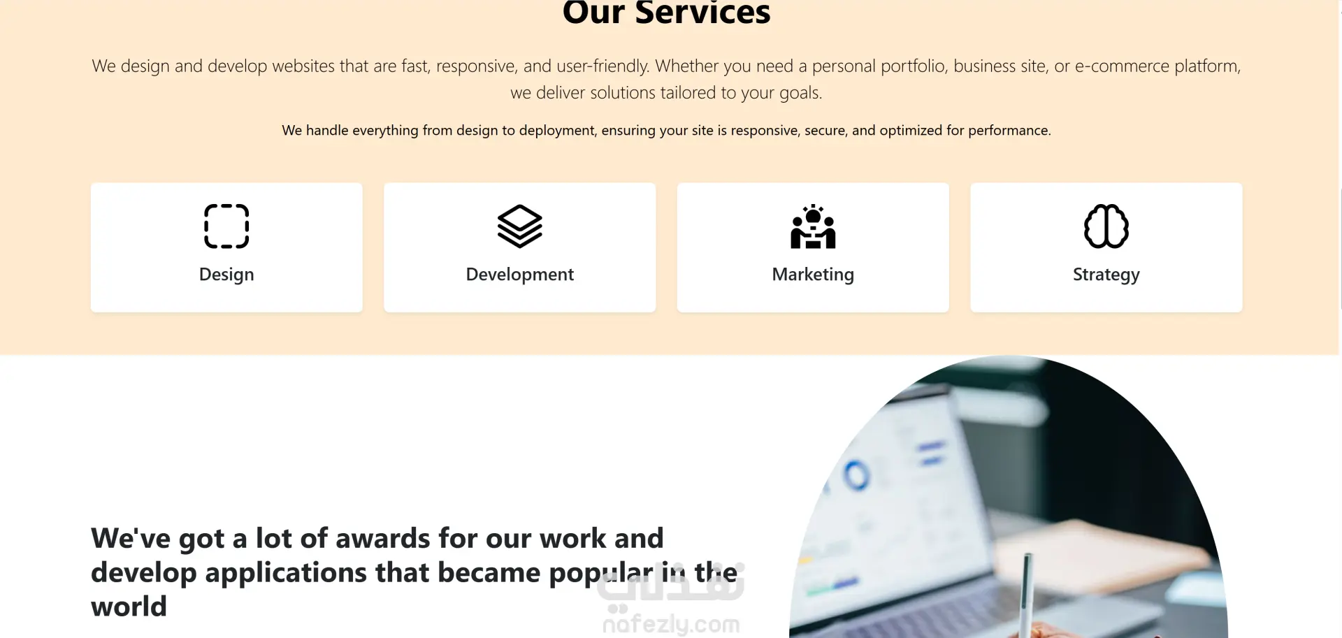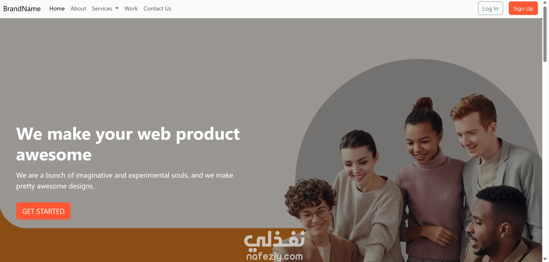 صفحة ويب frontend مكونة من عدة أقسام Home Service Contact About us