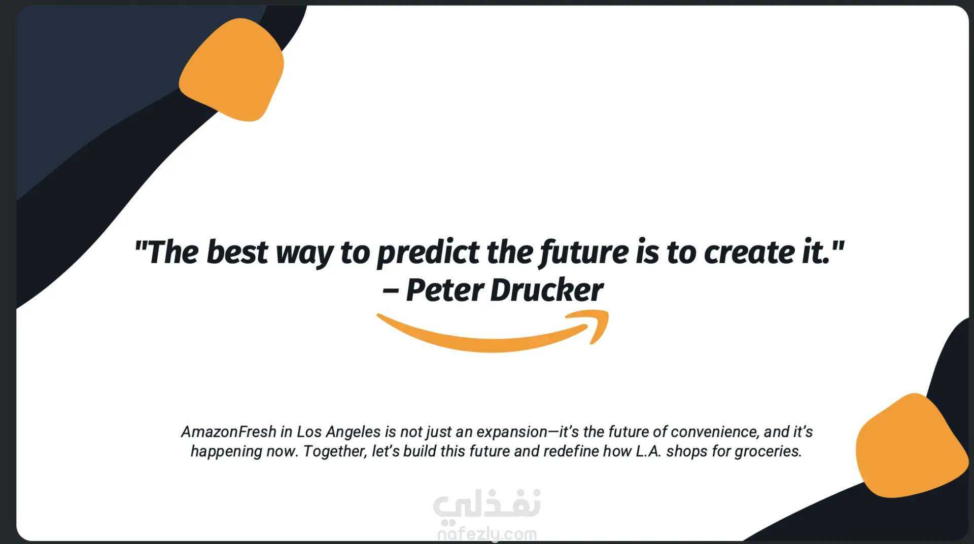 تصميمًا بصريًّا متناسقًا (ألوان، خطوط، تخطيط شرائح) يعكس احترافية العلامة التجارية لأمازون
