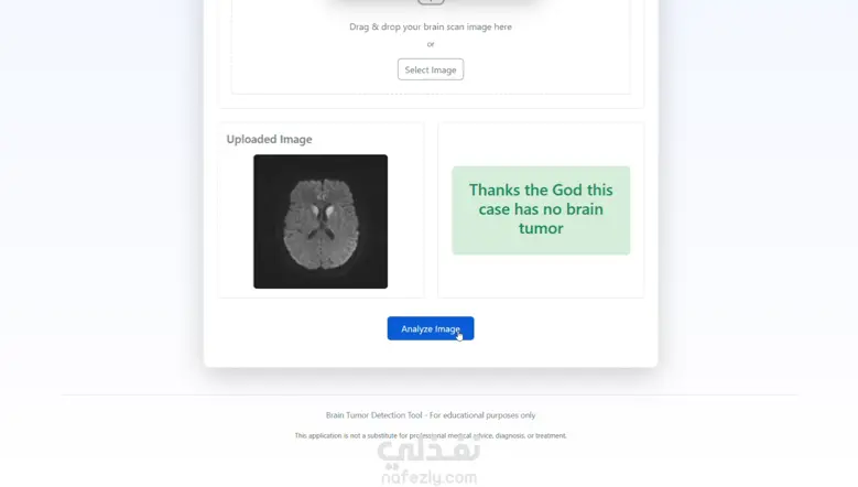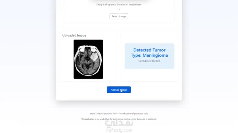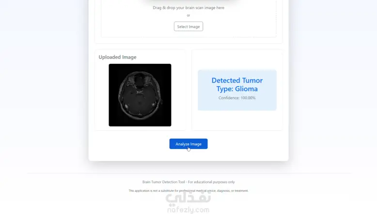 يهدف هذا المشروع إلى تصنيف أورام الدماغ بشكل آلي بالاعتماد على تقنيات التعلم العميق وصور الرنين المغناطيسي (MRI). يتكون مجموعة البيانات من أربع فئات: الورم الدبقي (Glioma)، الورم السحائي (Meningioma)، ورم الغدة النخامية (Pituitary)، وحالة بدون ورم (No Tumor)، مع تقسيمها إلى بيانات للتدريب والاختبار. لتحسين قدرة النموذج على التعميم، تم تطبيق تقنيات زيادة البيانات (Data Augmentation) مثل التدوير، التكبير، الانعكاس الأفقي، والقص، كما تمت إعادة تحجيم جميع الصور إلى 256×256 بكسل ومعالجتها بالتطبيع. تم بناء شبكة عصبية التفافية (CNN) من الصفر تحتوي على عدة طبقات التفاف (Convolution) وتجميع (Pooling)، تليها طبقات كثيفة (Dense) لاستخلاص الأنماط. الطبقة النهائية تستخدم دالة Softmax لتصنيف الصور إلى الأنواع الأربعة للأورام. تم تدريب النموذج باستخدام خوارزمية Adam ودالة الخسارة Categorical Crossentropy لمدة 22 عصر (Epochs)، مع استخدام التوقف المبكر (Early Stopping) لتجنب فرط التكيّف. حقق النموذج أداءً عالياً وصل إلى %95 دقة على بيانات الاختبار. وأخيرًا، تم حفظ أوزان النموذج (model1.weights.h5) ثم استخدمه في عمل موقع باستخدام flask حيث يقوم المستخدم برفع الصورة و هو يحلل و يوضح النتيجة