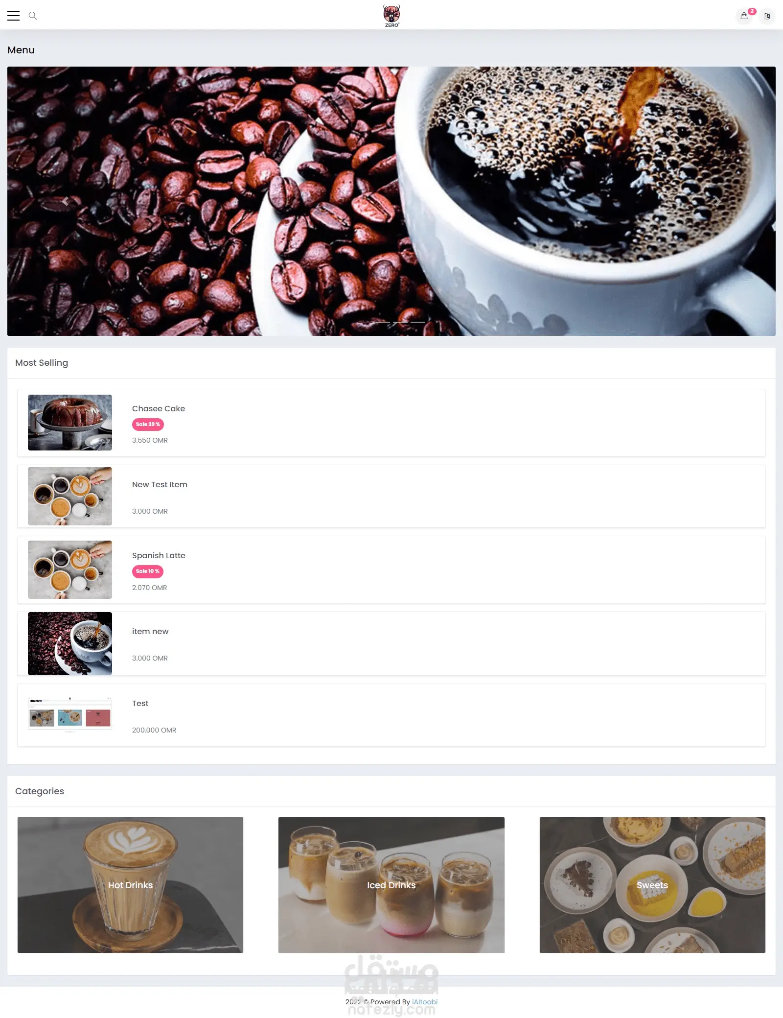 موقع الكتروني لمقهي متعدد اللغات