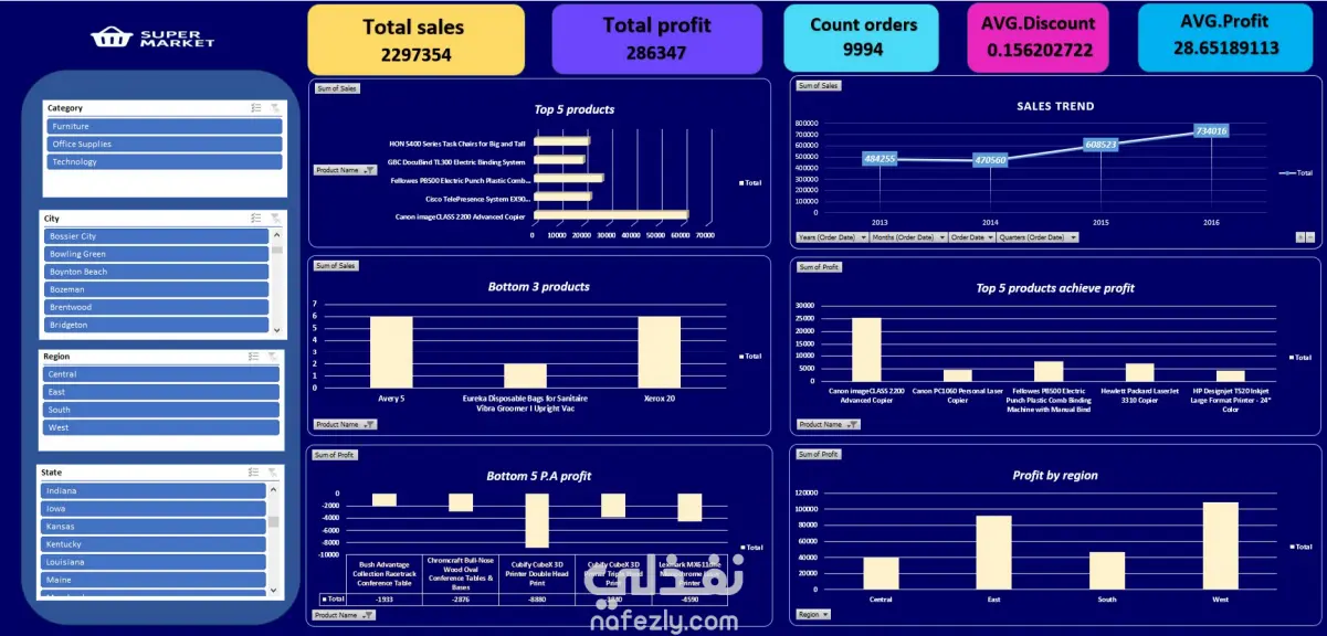 إنشاء لوحات معلومات (Dashboard) احترافية توضح الأداء العام للسوبرماركت.