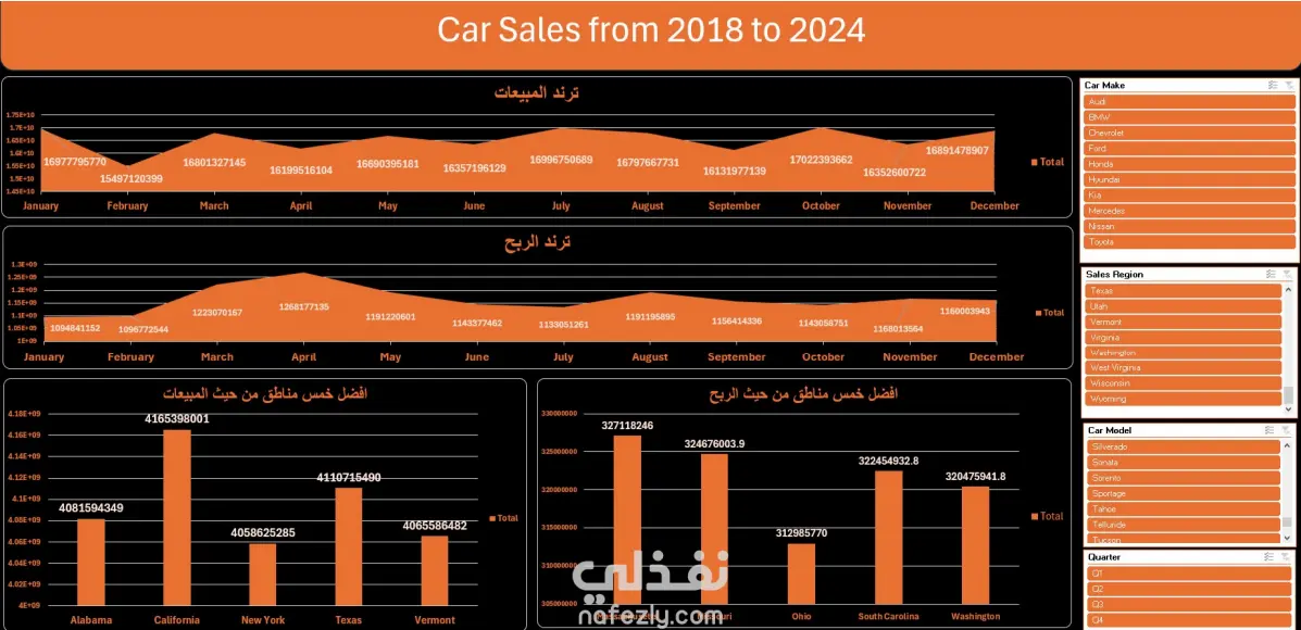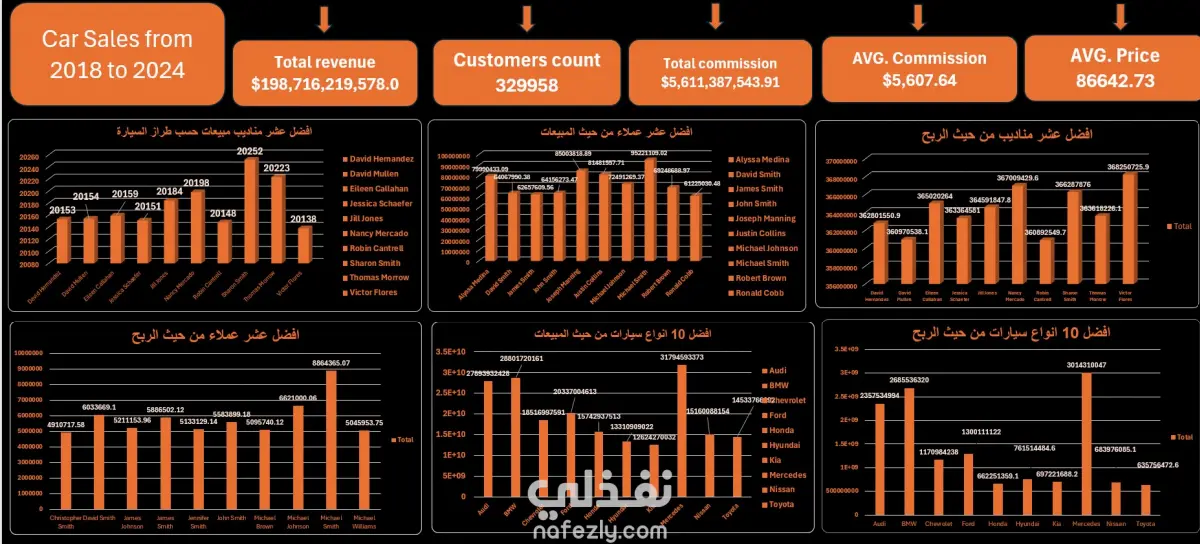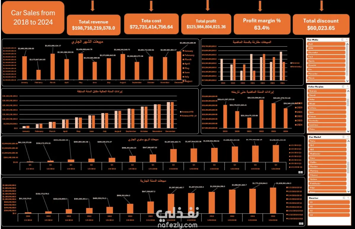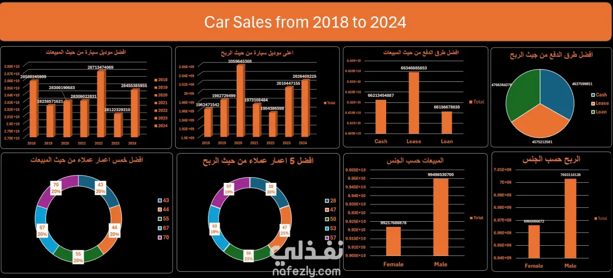 تحليل المبيعات حسب الماركات، الموديلات، الدول، والفترات الزمنية.