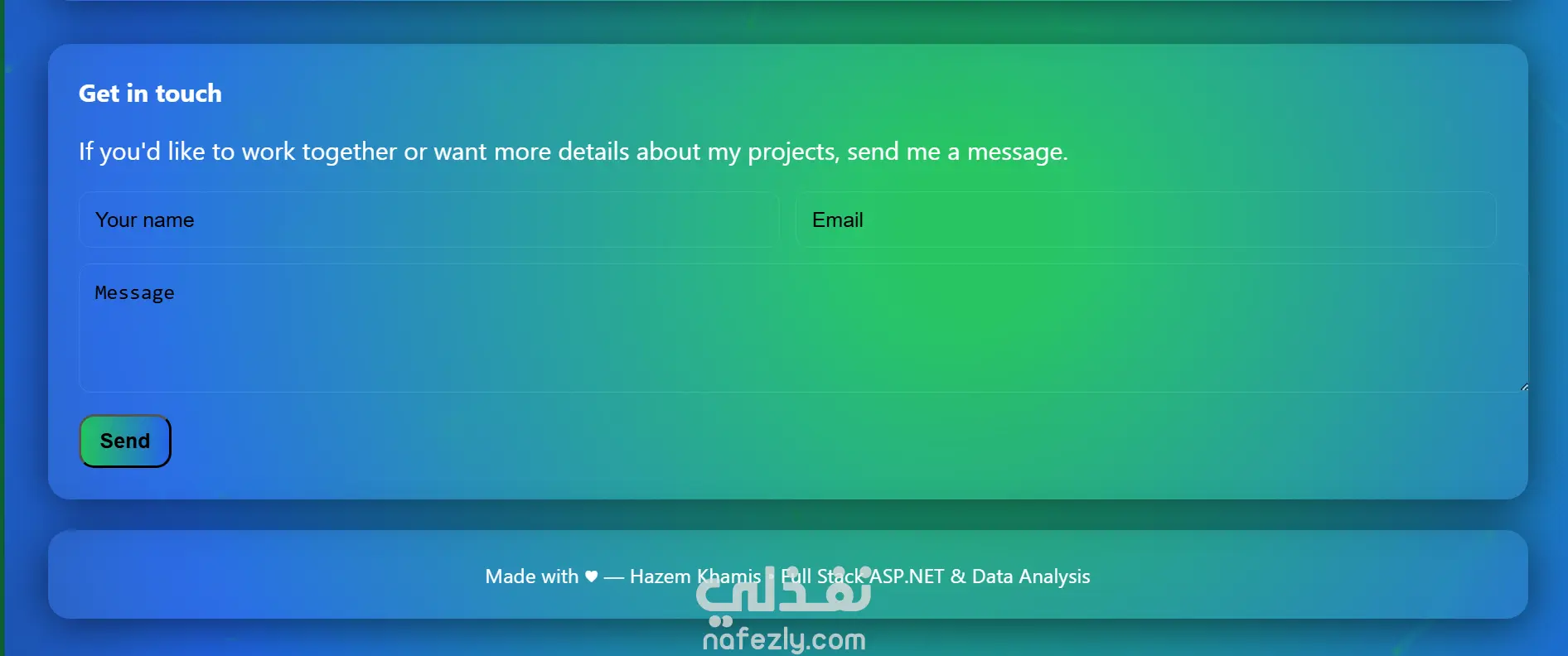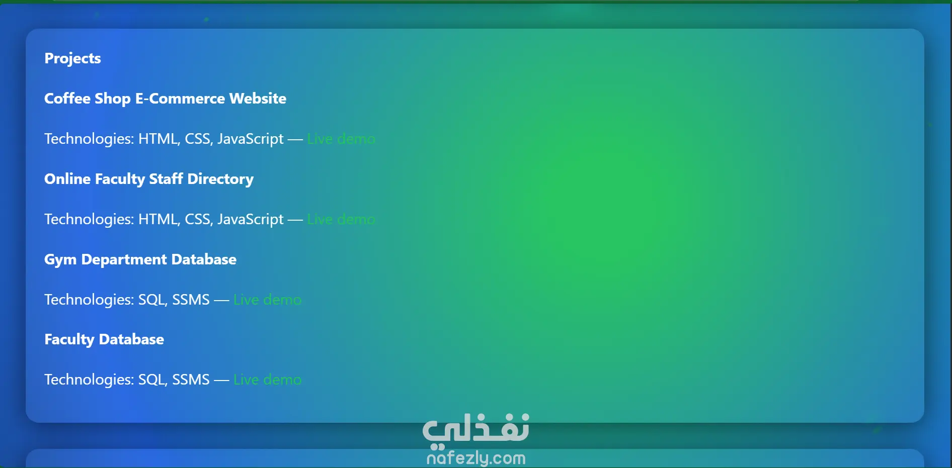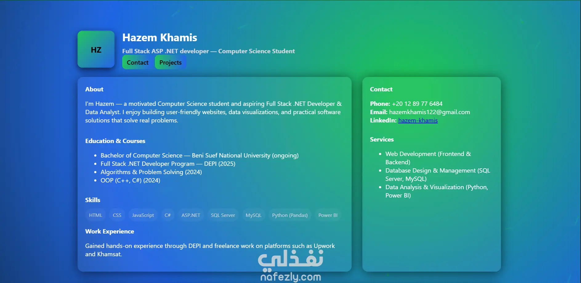 موقع بورتفوليو لعرض الاعمال الخاصة و الخدمات و احدث المشروعات و يحتوى على وسائل التواصل الخاصة