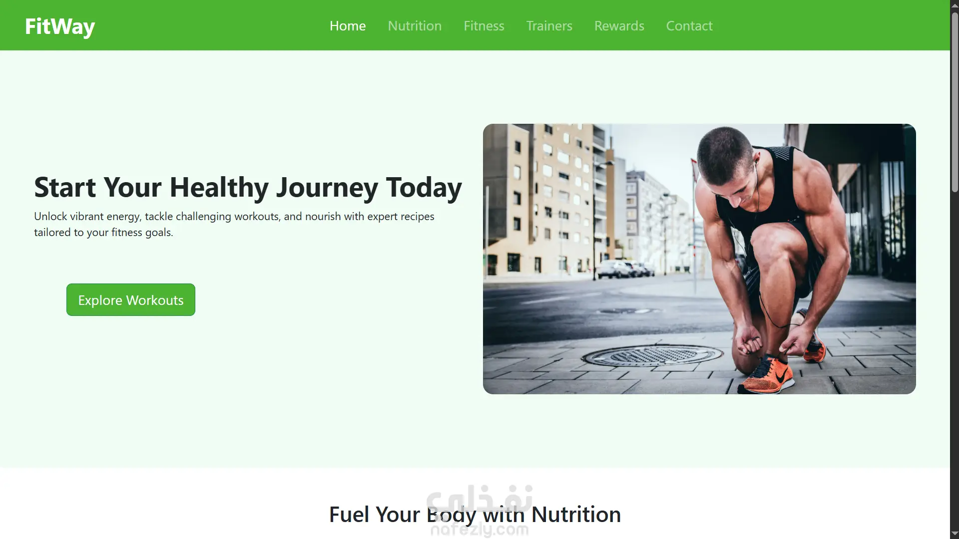 وصف المشروع: FitWay FitWay هو موقع تفاعلي يهدف إلى دعم المستخدمين في رحلتهم نحو نمط حياة صحي ومتوازن، من خلال دمج التغذية السليمة، التمارين الرياضية، والتوجيه الشخصي من مدربين محترفين. - المميزات والخدمات 1) خطة التغذية (Nutrition): وجبات إفطار صحية تغذي الجسم لبدء اليوم بنشاط. أطباق مستوحاة من النظام الغذائي المتوسطي. وجبات سريعة وسهلة التحضير لوقت العشاء. خيارات نباتية عالية البروتين. 2) اللياقة البدنية (Fitness): تمارين HIIT لرفع القدرة القلبية والإنفاق الحراري. تدريبات القوة لبناء العضلات وتحسين التحمل. تمارين اليوغا والمرونة للاسترخاء وسلامة الجسد. جلسات كارديو لحرق السعرات وزيادة النشاط اليومي. 3) المدربون (Trainers): فريق من الخبراء المتخصصين في مجالات مثل اليوغا، التغذية، التدريب المكثّف، وغيرها. يقدمون خططًا مخصصة بناءً على مستوى المستخدم وأهدافه. 4) التواصل والدعم (Contact / Rewards): إمكانية التواصل مع فريق الدعم وطرح الاستفسارات. نظام مكافآت لتحفيز الالتزام وخلق تجربة ممتعة للمستخدمين.