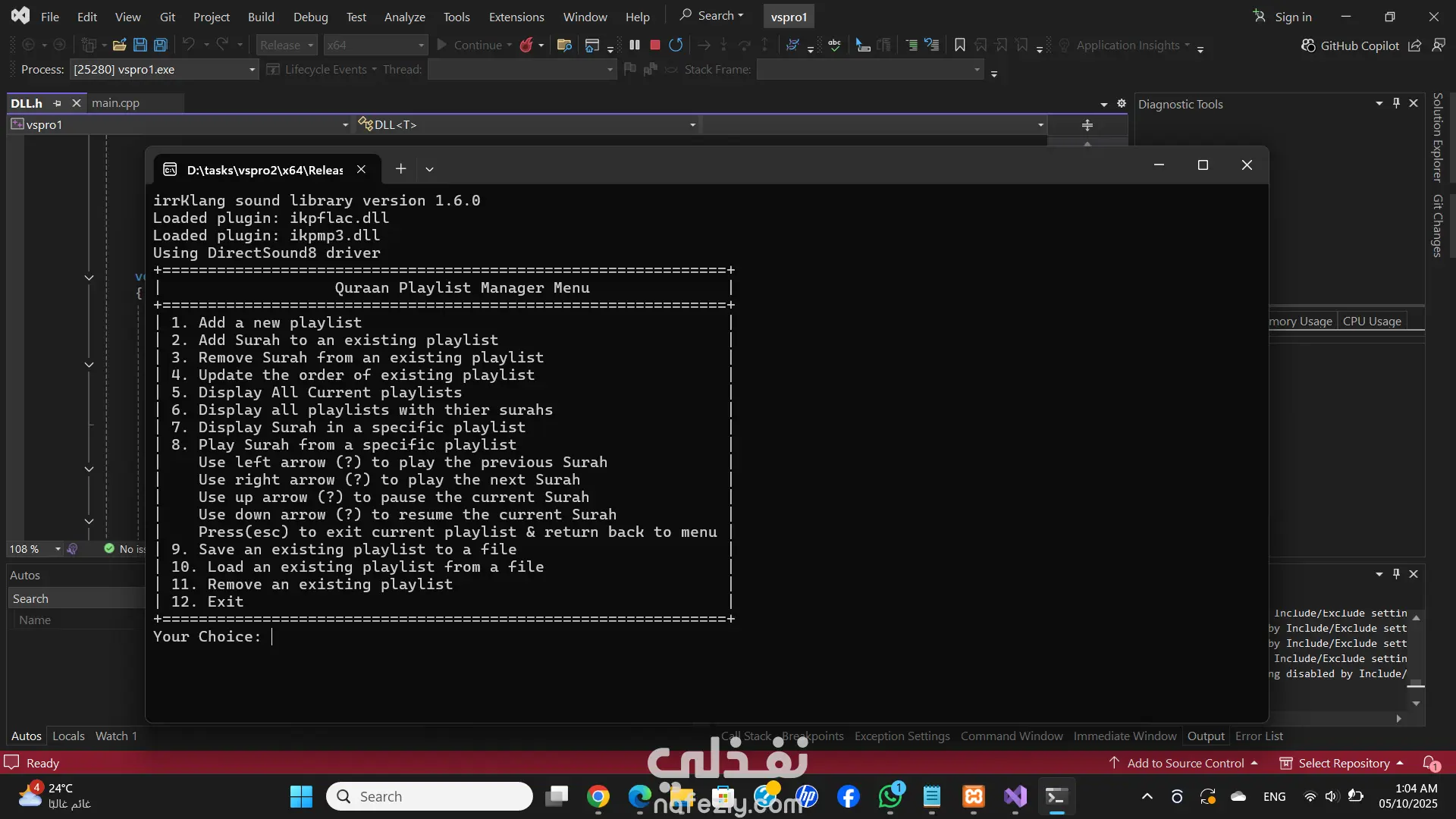 يمكن تشغيل ال playlist والاستماع لاصوات الشيوخ (باستخدام irrklang ).