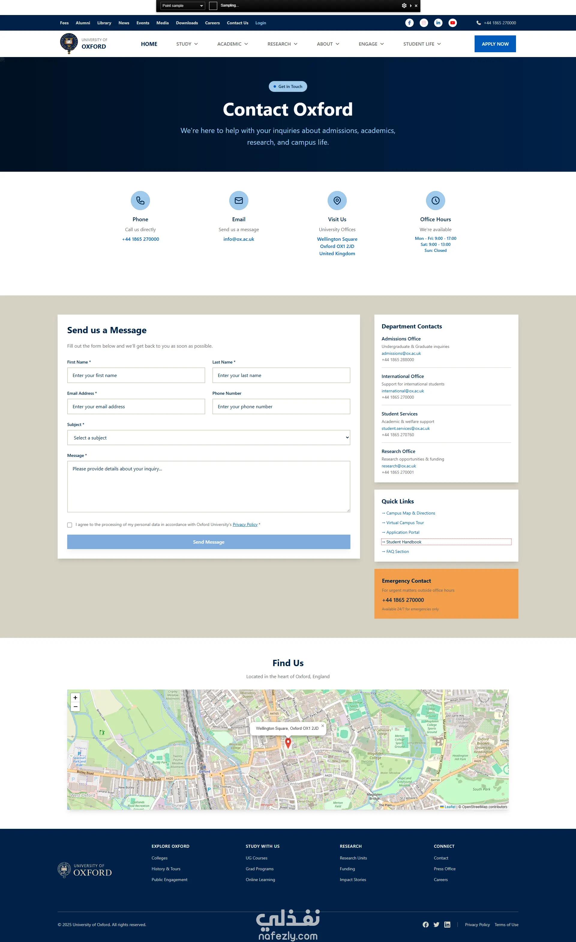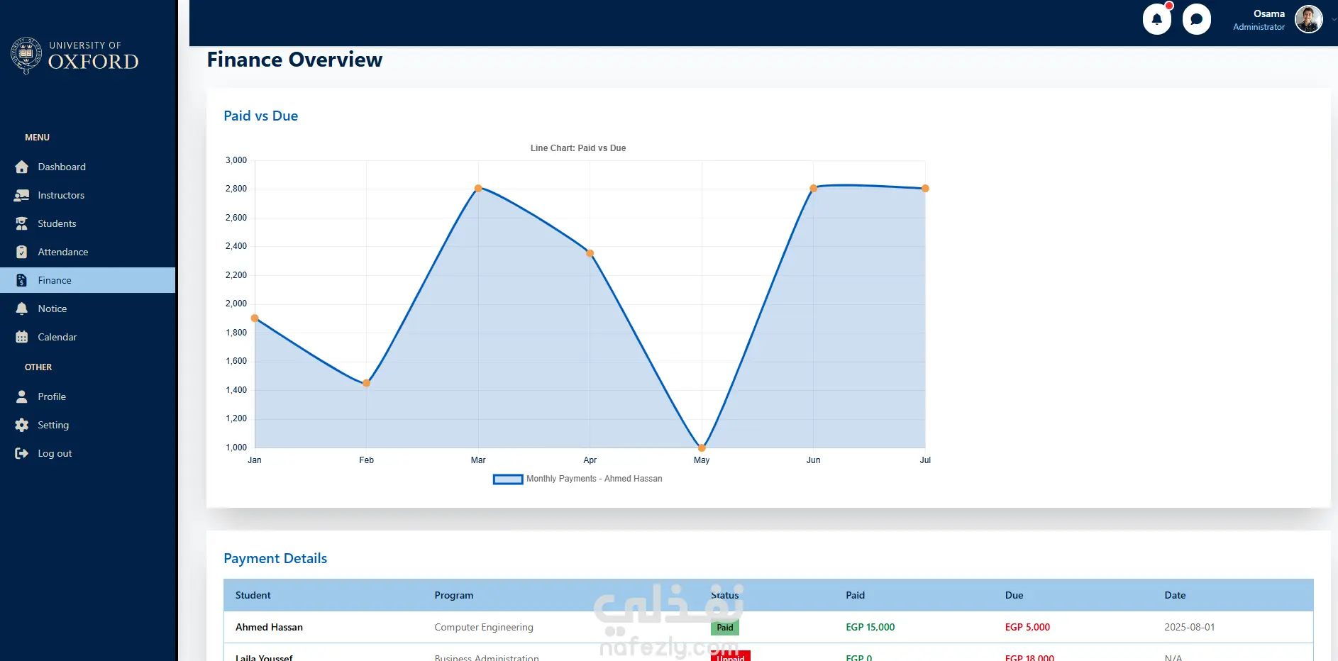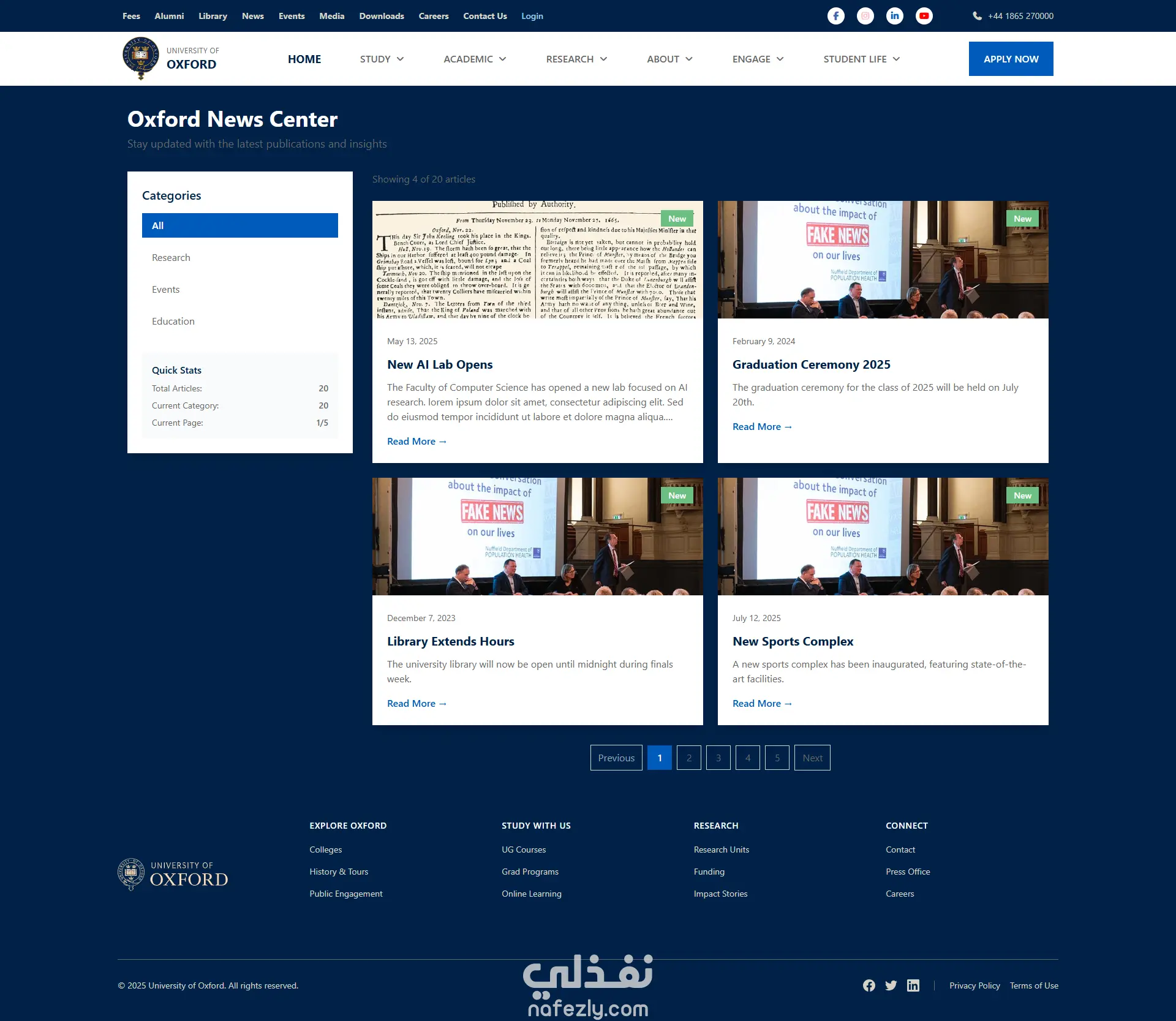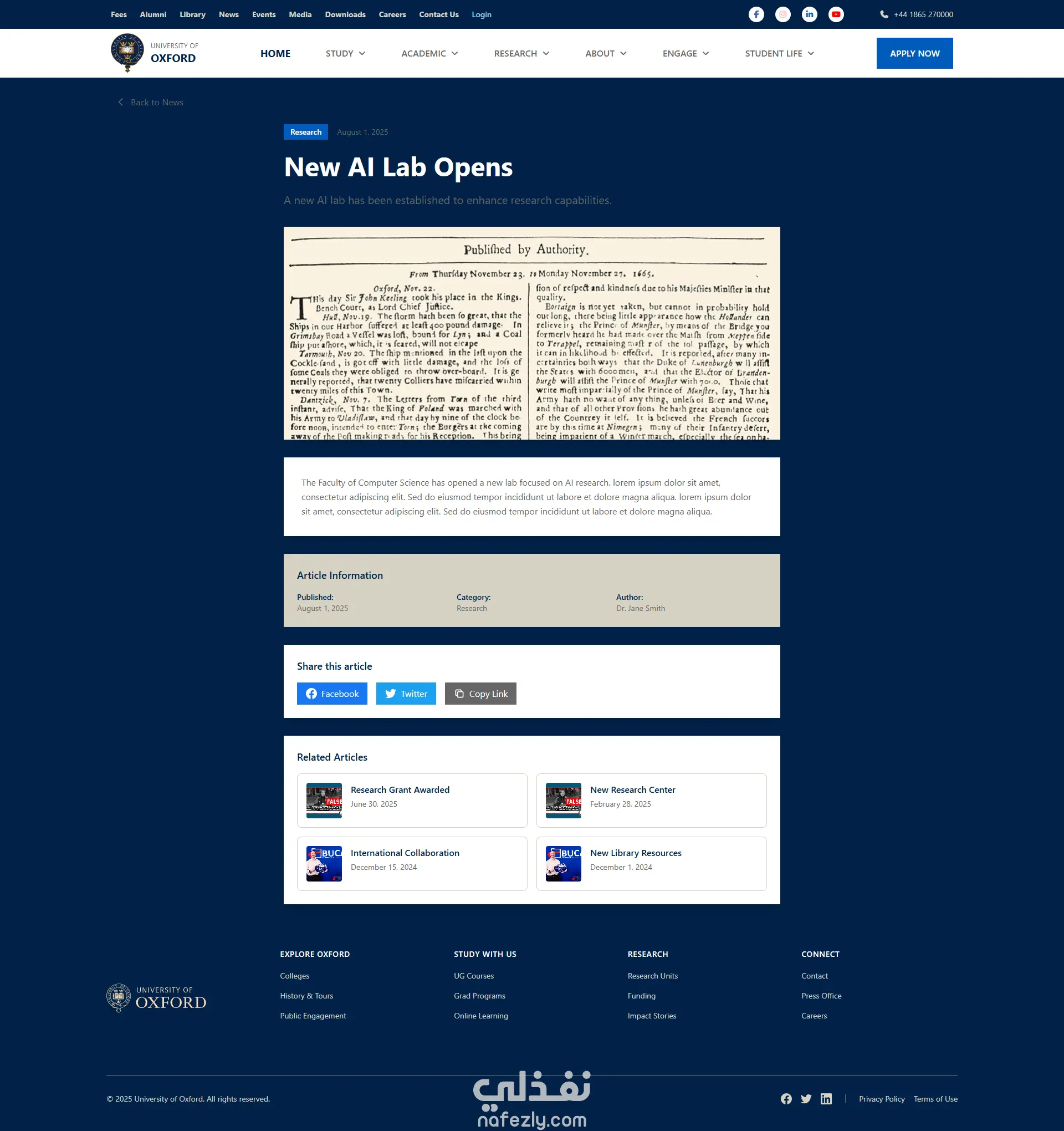 هذا المشروع هو موقع ويب ديناميكي يحاكي تصميم وعمل نظام إدارة جامعة شبيه بجامعة Oxford، تم بناؤه باستخدام Angular مع TypeScript وTailwind CSS، ويتضمن واجهة عامة للزوار بالإضافة إلى لوحة تحكم متكاملة للإدارة.