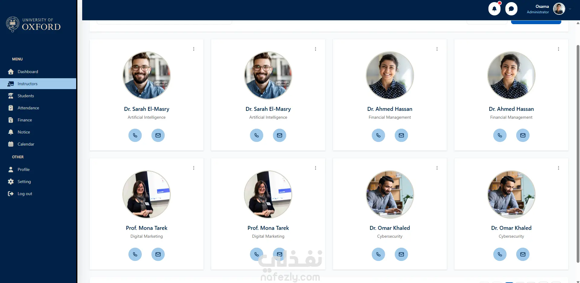 عرض قائمة المدرسين مع بياناتهم وتخصصاتهم وصورهم.