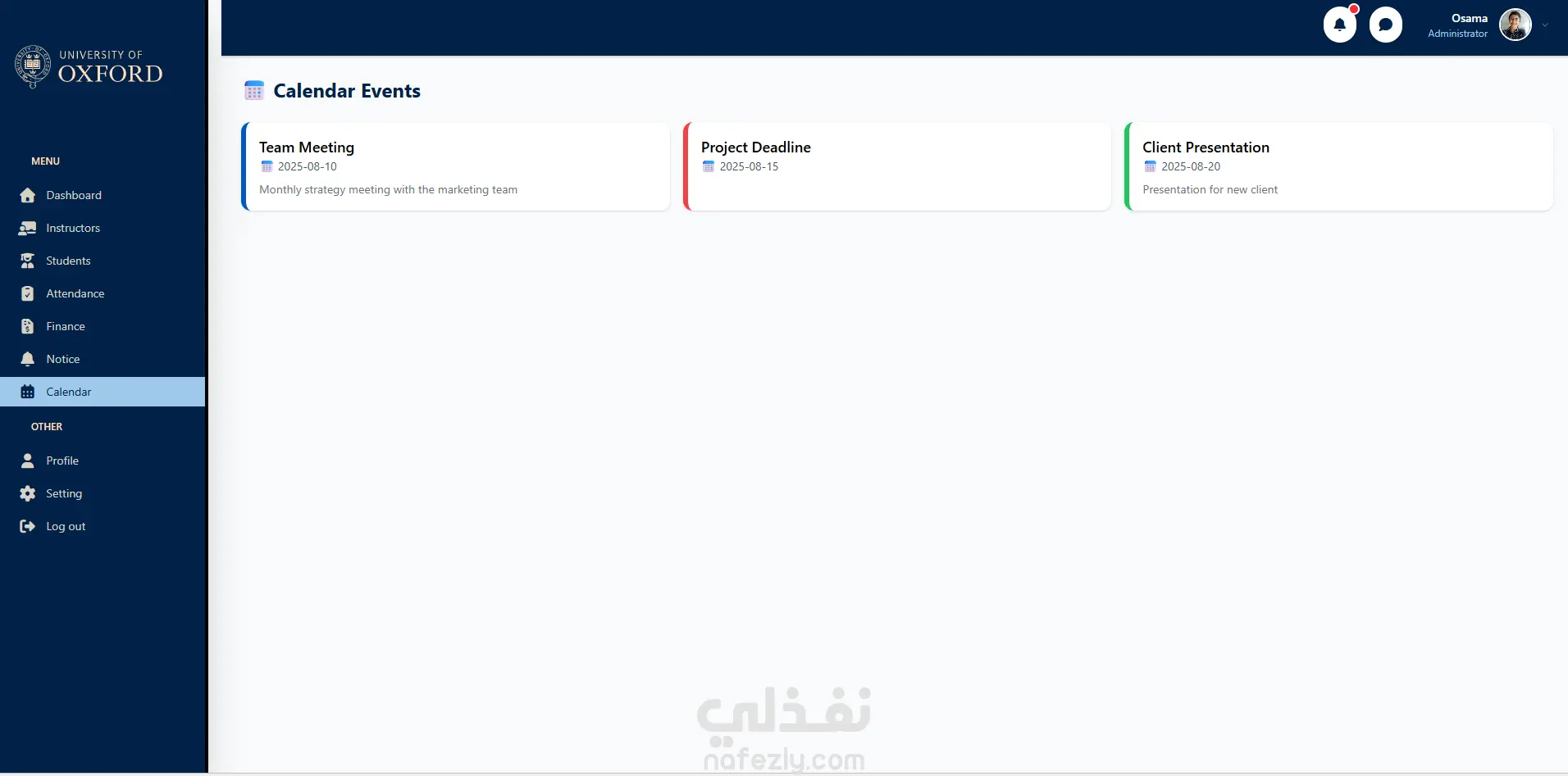 عرض جدول زمني للأحداث الأكاديمية والمواعيد الهامة.