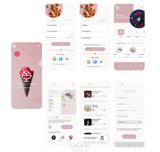 تطبيق آيس كريم مميز يقدّم تجربة مستخدم سلسة وجذابة، مع إمكانية اختيار النكهات المفضلة وتخصيص الطلبات بسهولة. التصميم العصري والواجهة البسيطة تضمن لك تجربة فريدة وممتعة في كل مرة.