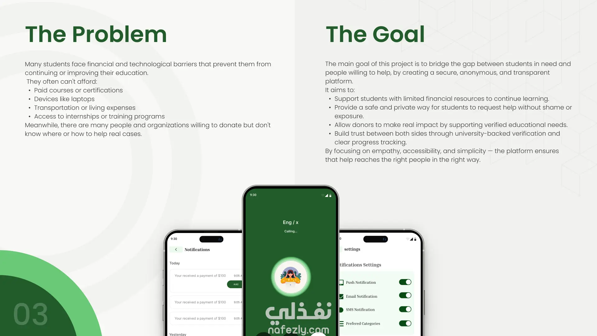 مشروع Student Support هو منصة رقمية تم تطويرها لمساعدة الطلاب الجامعيين الذين يواجهون صعوبات مالية أو تعليمية، من خلال ربطهم بجهات مانحة بشكل آمن ومجهول. يتيح التطبيق للطلاب طلب دعم مادي أو تعليمي (زي منح دراسية، لابتوبات، أو اشتراكات شهرية)، بينما يمكن للمتبرعين اختيار الطلاب المناسبين لدعمهم بدون معرفة هويتهم، مما يضمن الخصوصية والشفافية للطرفين.