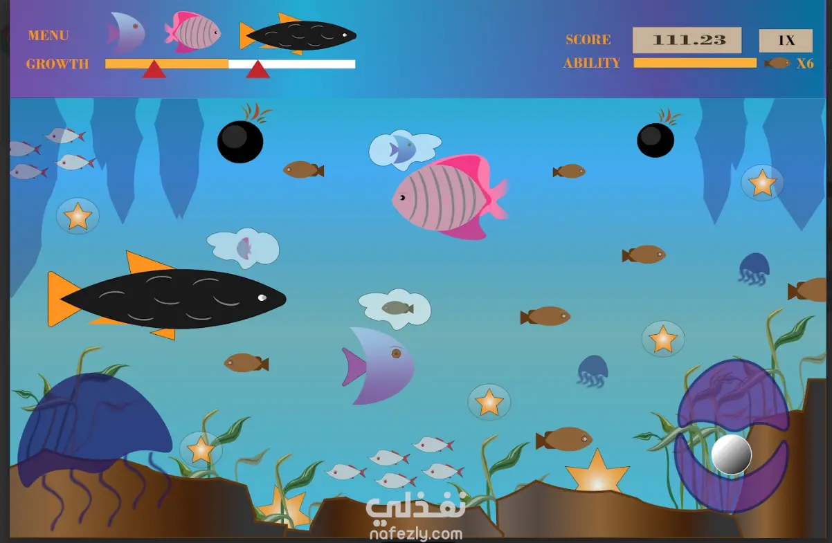 لعبة تحت الماء تساعد الأطفال على تحسين مهارات الانتباه. التصميم بيحتوي على عناصر مرحة وشاشات مستويات ومؤشرات التقدم.