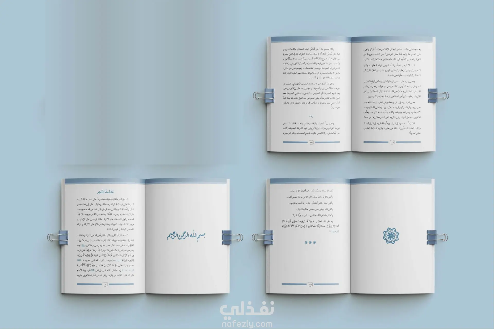 العمل على تنسيق وتصميم الصفحات الداخلية لمجموعة متنوعة ومختلفة من الكتب الدينية والفقهية، الأعمال تشكل كتب المساحتين وكتب الثلاث مساحات، العمل على الإخراج الفني منذ استلام ملف الـWord الخاص بالكتاب والعمل على إخراجه بشكل كامل وفرز الألوان وتسليمه ليكون جاهزاً إلى إرسالة إلى المطبعة فورا.