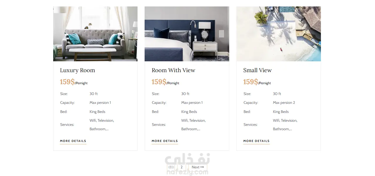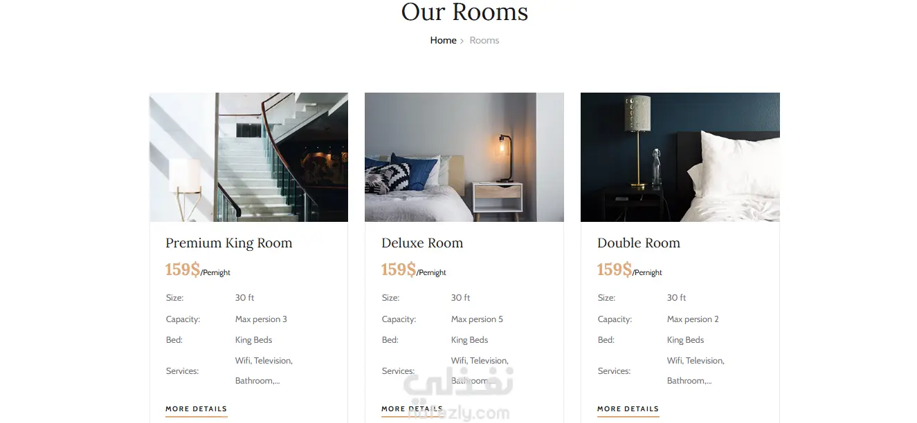 موقع خاص ب فندق يتيح من خلاله ادارة الغرف (اضافة وحذف وتعديل وعرض بيانات الغرف) فحص حالة الغرف (فحص ان كانت الغرفة متاحة في التاريخ الذي يدخله المستخدم) ادارة الحجوزات (انشاء الحجز و التعديل على فترة الحجز و امكانية الغاء الحجز وعرض تفاصيله) الدفع الالكتروني (الربط مع اشهر بوابات الدفع وهي stripe )