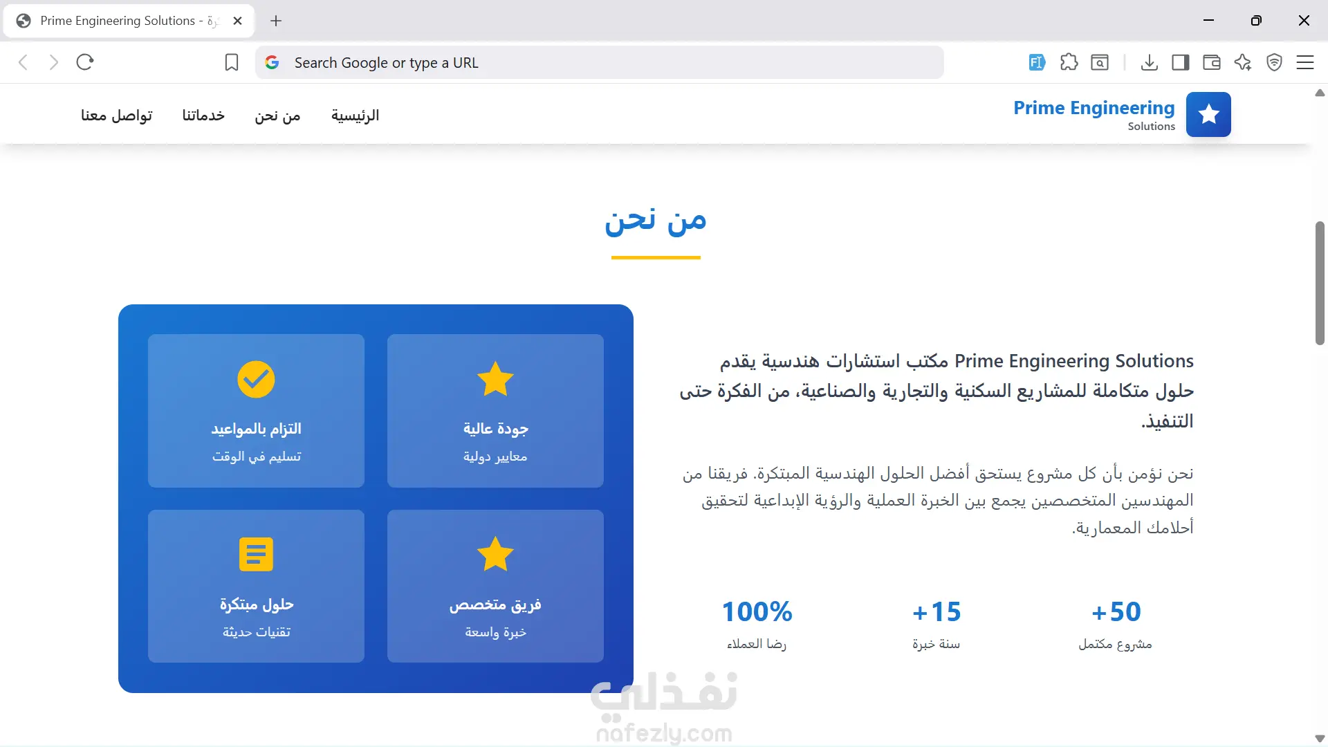 موقع إلكتروني لمكتب استشارات هندسية يبرز مجالات عمل المكتب وخدماته بشكل منظم وواضح. تم تصميم الموقع بواجهة مستخدم احترافية تدعم الهوية البصرية للمكتب، مع ضمان توافقه مع مختلف الأجهزة والشاشات. كما روعي في التطوير تحقيق أداء مستقر وسرعة تحميل عالية بما يساهم في تعزيز تواجد المكتب الرقمي وزيادة تواصله مع العملاء.