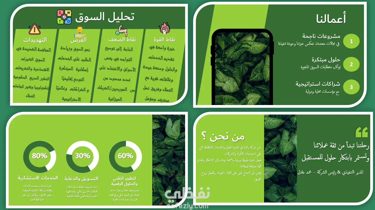 الهدف من العرض: إبراز قوة الشركة ورؤيتها المستقبلية بشكل احترافي وبسيط، مع تصميم عصري وأنيق يناسب العروض الرسمية.