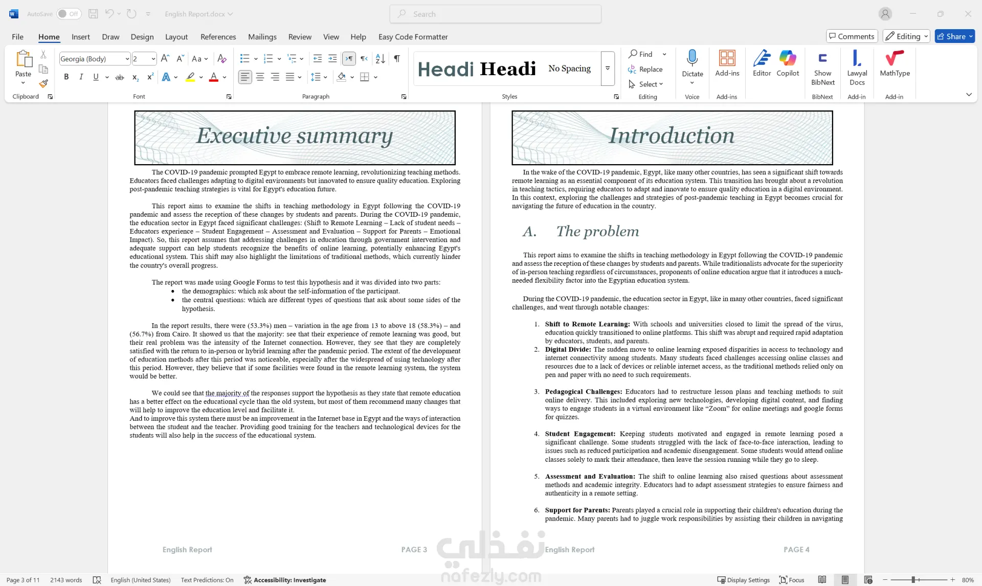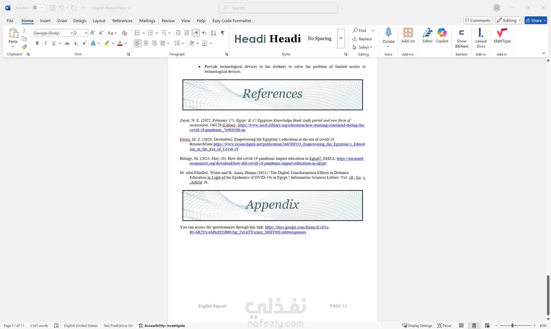 إعداد وتنسيق تقرير أكاديمي باللغة الإنجليزية حول التعليم في مصر بعد جائحة كورونا