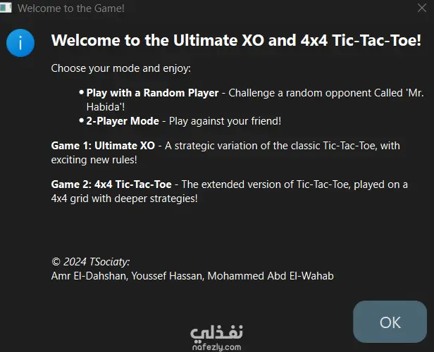 قمت بتطوير تطبيق Game Arcade Application باستخدام لغة ++C ومكتبة Qt لتقديم تجربة ألعاب تفاعلية بواجهة رسومية حديثة وسلسة. يضم التطبيق لعبتين ممتعتين هما 4x4 Tic Tac Toe وUltimate Tic Tac Toe، حيث قمت بتحويل التجربة من واجهة نصية إلى واجهة رسومية تفاعلية (GUI) توفر تجربة لعب طبيعية وجذابة للمستخدمين. يتميز التطبيق بواجهة منظمة ذات تصميم شبكي واضح، وأزرار تفاعلية تسهّل وضع الحركات، مع تحديث فوري لحالة اللعبة بعد كل خطوة. كما أضفت مؤثرات بصرية توضح حالات الفوز وتفصل بوضوح بين الشبكات لتحسين تجربة الاستخدام. استخدمت نهجًا برمجيًا معياريًا لدمج الواجهة الرسومية بسلاسة مع منطق اللعبة، مع التركيز على تحسين الأداء وسلاسة العرض. يهدف هذا المشروع إلى رفع تجربة المستخدم من خلال التفاعل البصري والمباشر، ويمهّد الطريق لتطوير خصائص مستقبلية مثل السحب والإفلات، المؤثرات الصوتية، والذكاء الاصطناعي للعب الفردي. هذا المشروع يعكس مهاراتي في برمجة الواجهات الرسومية باستخدام Qt، وفهمي العميق لتصميم الألعاب، وهيكلة الكود، والعمل بروح الفريق لتحقيق نتائج احترافية.