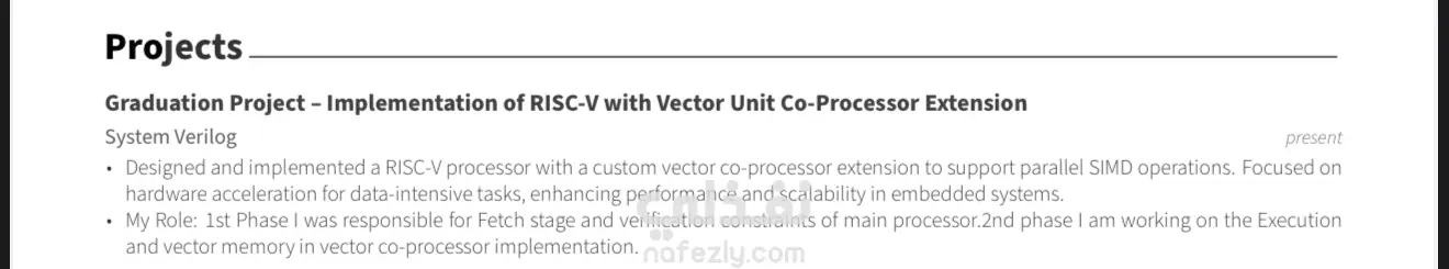 • My Role: 1st Phase I was responsible for Fetch stage and verification constraints of main processor.2nd phase I am working on the Execution