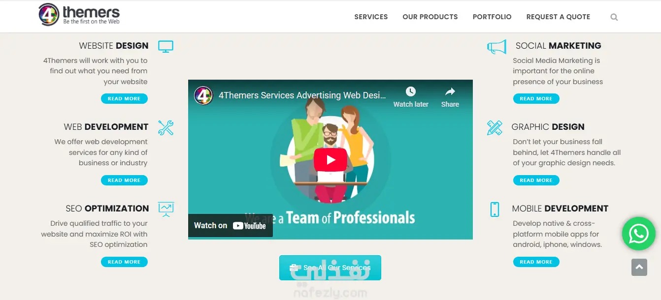 موقع لشركة 4Themers لخدمات مواقع الويب مدمج معه نظام ادارة المشاريع وخدمة العملاء
