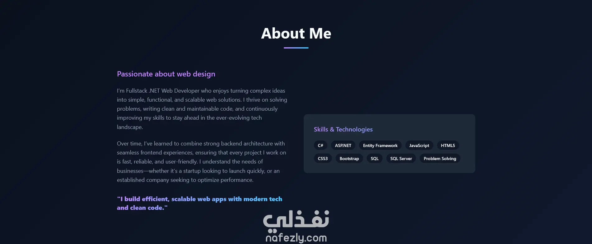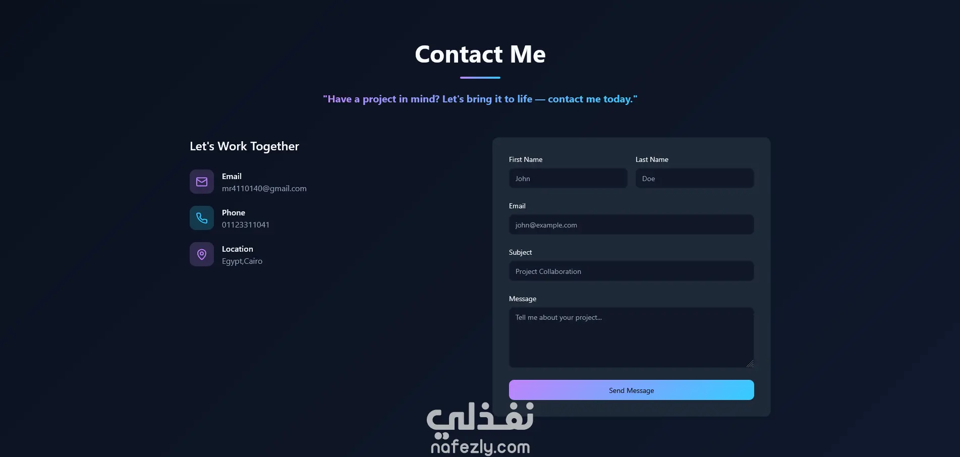 A responsive personal portfolio website . The site highlights skills, projects, and contact information in a clean and modern design. I focused on creating a user-friendly layout, smooth animations, and mobile compatibility