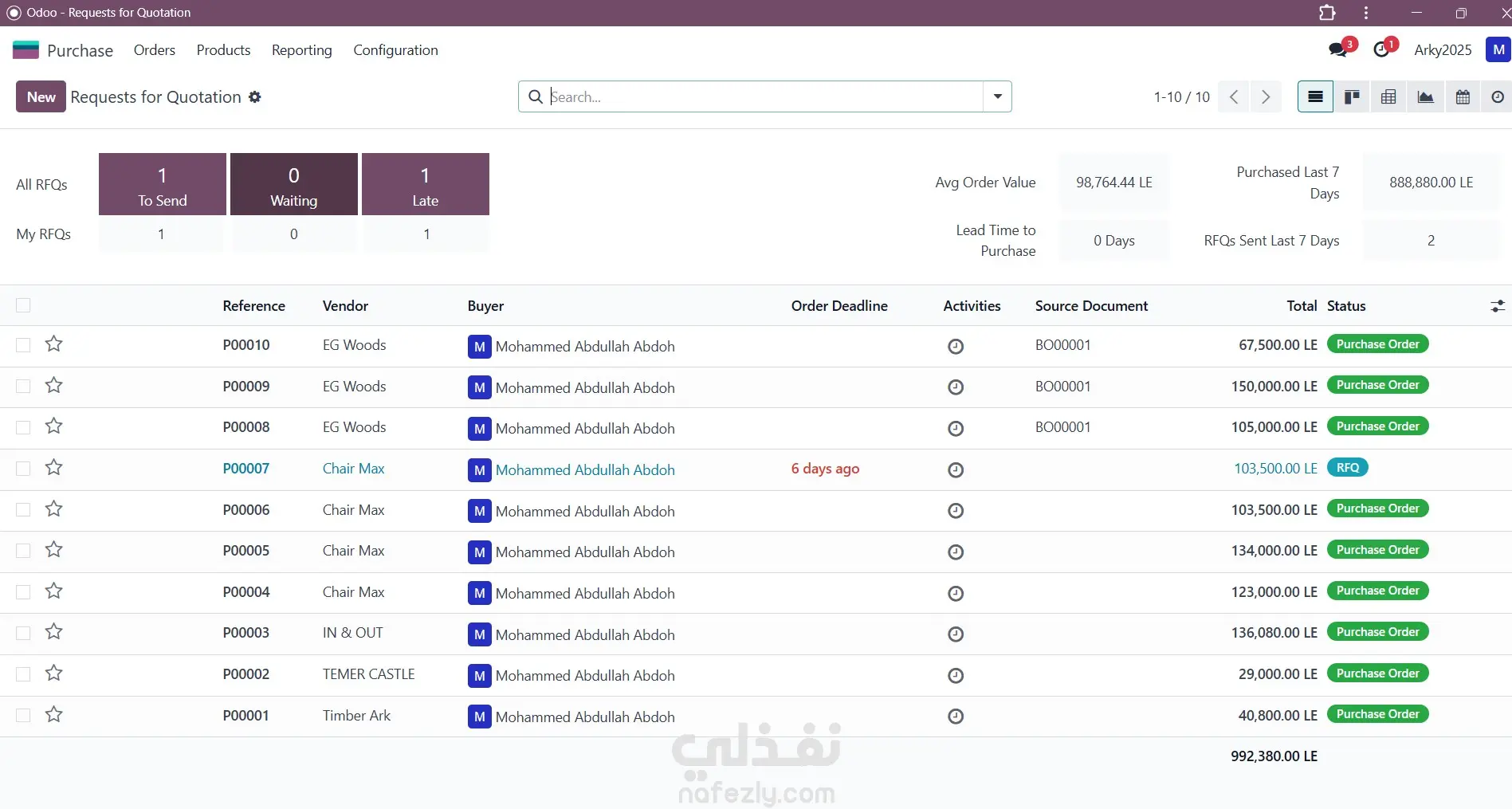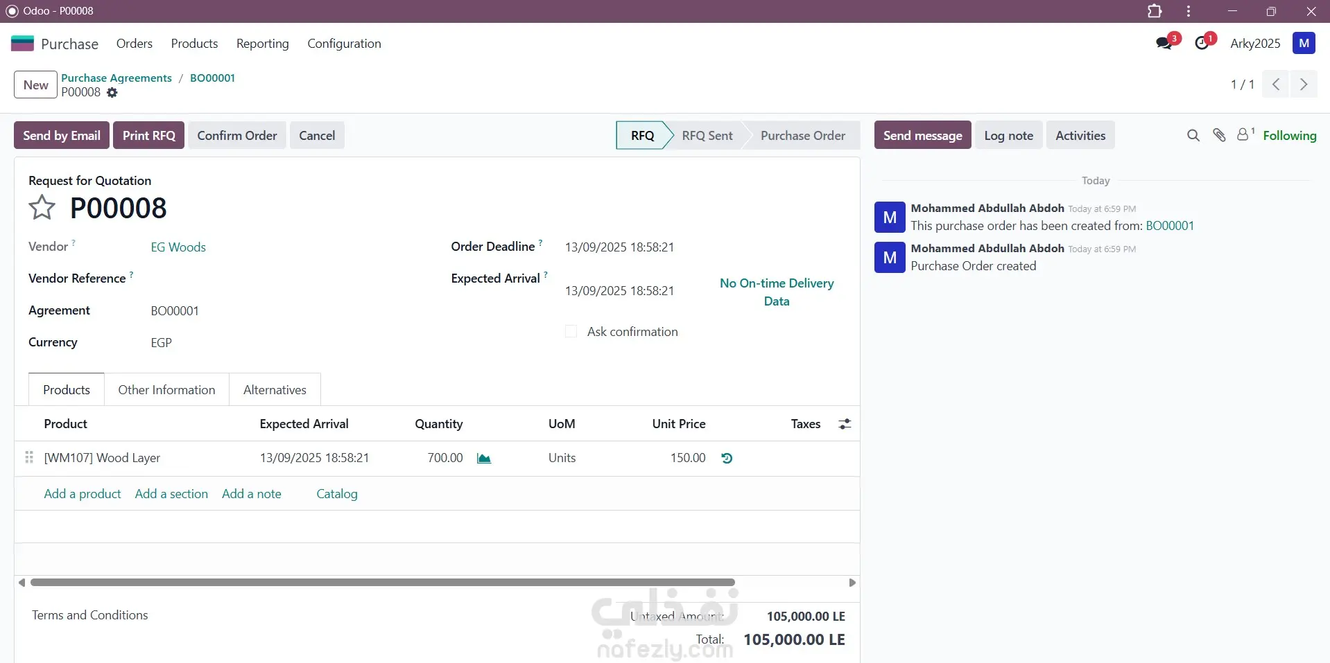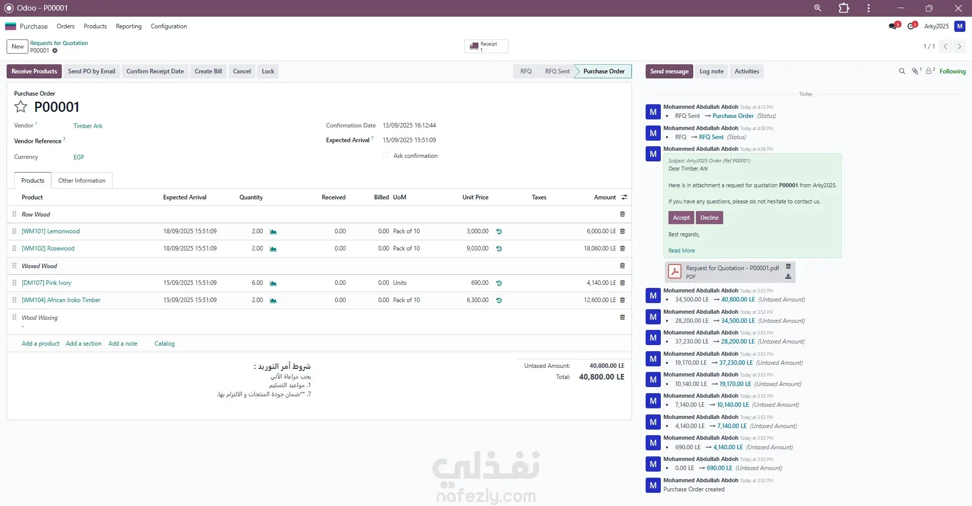 تطبيق المشتريات في Odoo: نظام إدارة سلسلة الشراء المتكاملة تطبيق المشتريات (Purchase) في Odoo ERP هو حل متكامل يهدف إلى أتمتة وإدارة دورة الشراء بالكامل في الشركات. هو ليس مجرد نظام لتسجيل الفواتير، بل هو أداة استراتيجية تقوم بما يلي: طلب العروض والمقارنة: إنشاء طلبات عروض أسعار (RFQ) للموردين المتعددين والمقارنة بينها للحصول على أفضل سعر وشروط. التنفيذ والتتبع: تحويل العروض المقبولة إلى أوامر شراء رسمية وتتبعها وصولاً إلى الاستلام. التكامل الآلي: يتكامل مباشرة مع المخزون لتحديث الأرصدة تلقائياً عند الاستلام، ومع المحاسبة لإصدار فواتير الموردين والتحكم في التدفق النقدي. أهمية Odoo لتطبيق المشتريات تكمن أهميته للشركات في تمكينها من: خفض التكاليف: من خلال مقارنة الأسعار وتحسين استراتيجيات الشراء. زيادة الكفاءة: عبر أتمتة العمليات وتقليل الأعمال الورقية. الرقابة المالية: ضمان التزام المشتريات ببنود الموازنة وتوفير تقارير تحليلية دقيقة. إدارة الموردين: تنظيم وتقييم أداء الموردين لضمان جودة واستمرارية التوريد.
