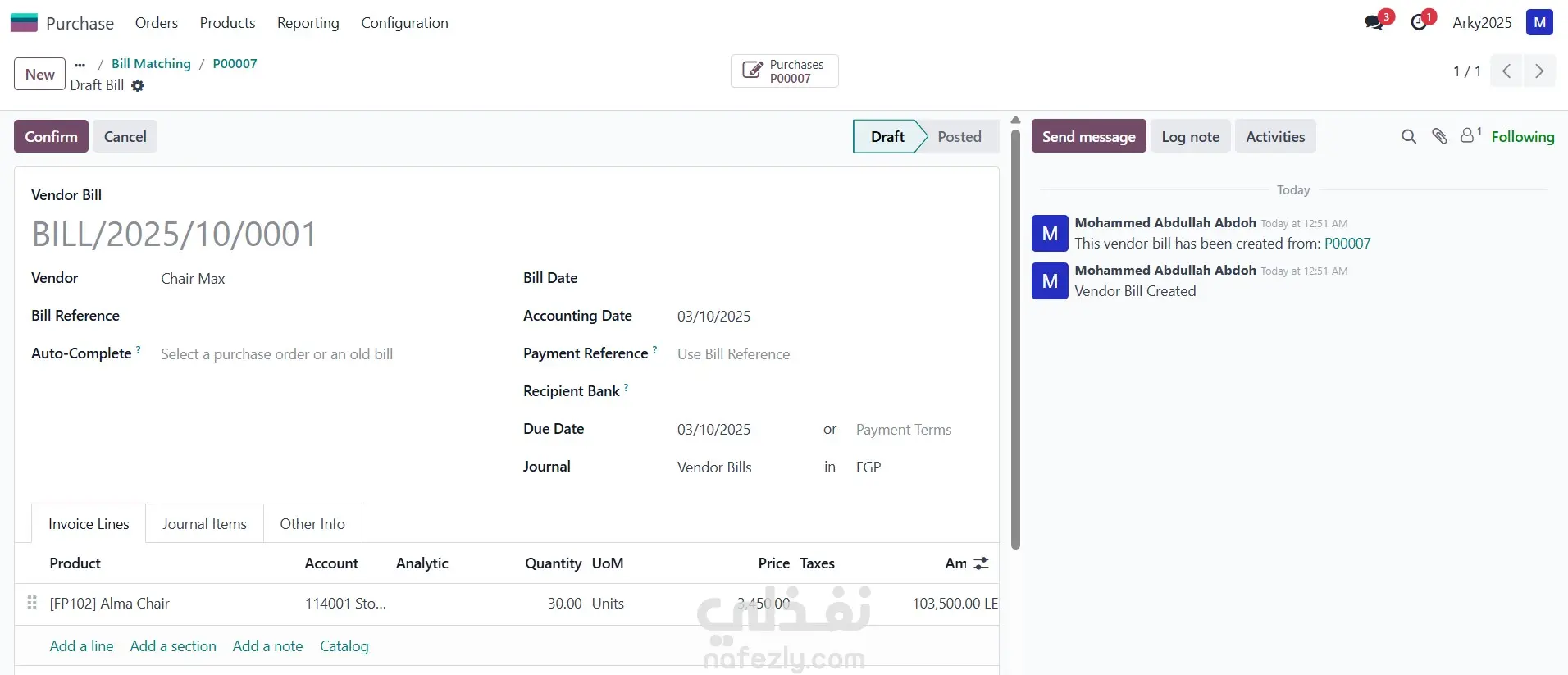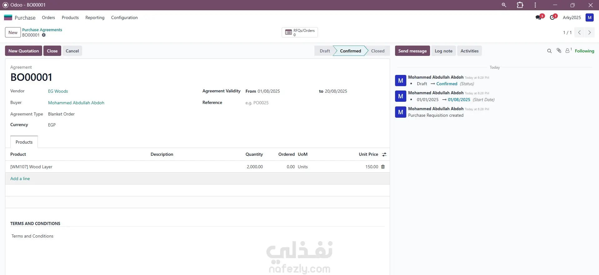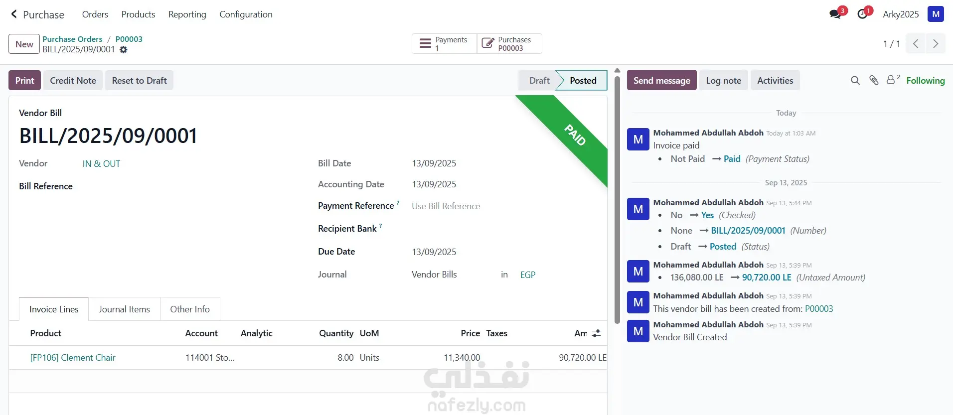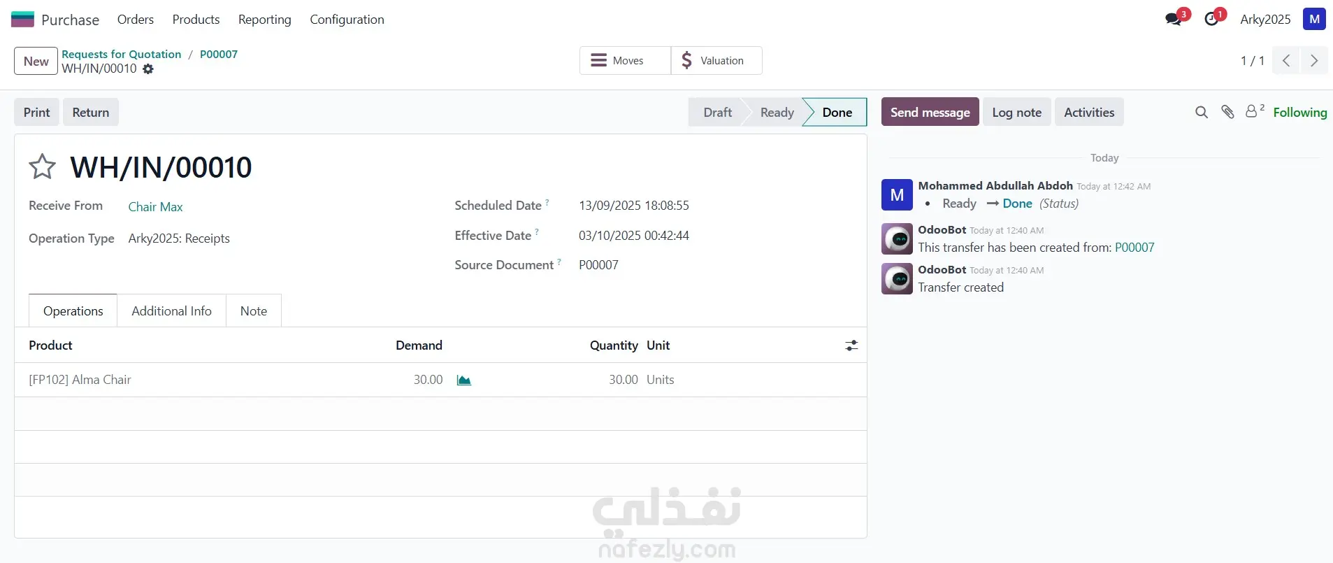 تطبيق المشتريات في Odoo: نظام إدارة سلسلة الشراء المتكاملة تطبيق المشتريات (Purchase) في Odoo ERP هو حل متكامل يهدف إلى أتمتة وإدارة دورة الشراء بالكامل في الشركات. هو ليس مجرد نظام لتسجيل الفواتير، بل هو أداة استراتيجية تقوم بما يلي: طلب العروض والمقارنة: إنشاء طلبات عروض أسعار (RFQ) للموردين المتعددين والمقارنة بينها للحصول على أفضل سعر وشروط. التنفيذ والتتبع: تحويل العروض المقبولة إلى أوامر شراء رسمية وتتبعها وصولاً إلى الاستلام. التكامل الآلي: يتكامل مباشرة مع المخزون لتحديث الأرصدة تلقائياً عند الاستلام، ومع المحاسبة لإصدار فواتير الموردين والتحكم في التدفق النقدي. أهمية Odoo لتطبيق المشتريات تكمن أهميته للشركات في تمكينها من: خفض التكاليف: من خلال مقارنة الأسعار وتحسين استراتيجيات الشراء. زيادة الكفاءة: عبر أتمتة العمليات وتقليل الأعمال الورقية. الرقابة المالية: ضمان التزام المشتريات ببنود الموازنة وتوفير تقارير تحليلية دقيقة. إدارة الموردين: تنظيم وتقييم أداء الموردين لضمان جودة واستمرارية التوريد.