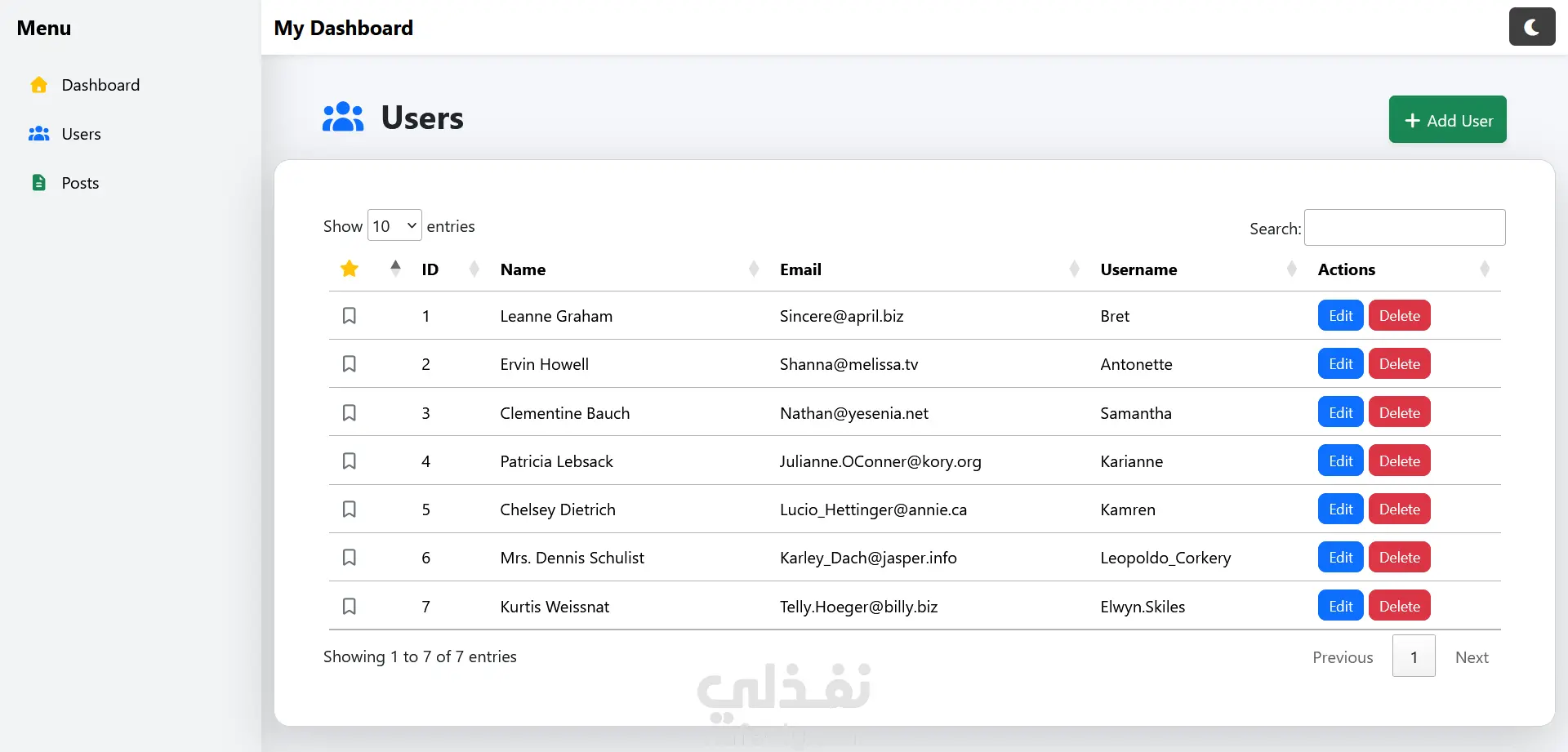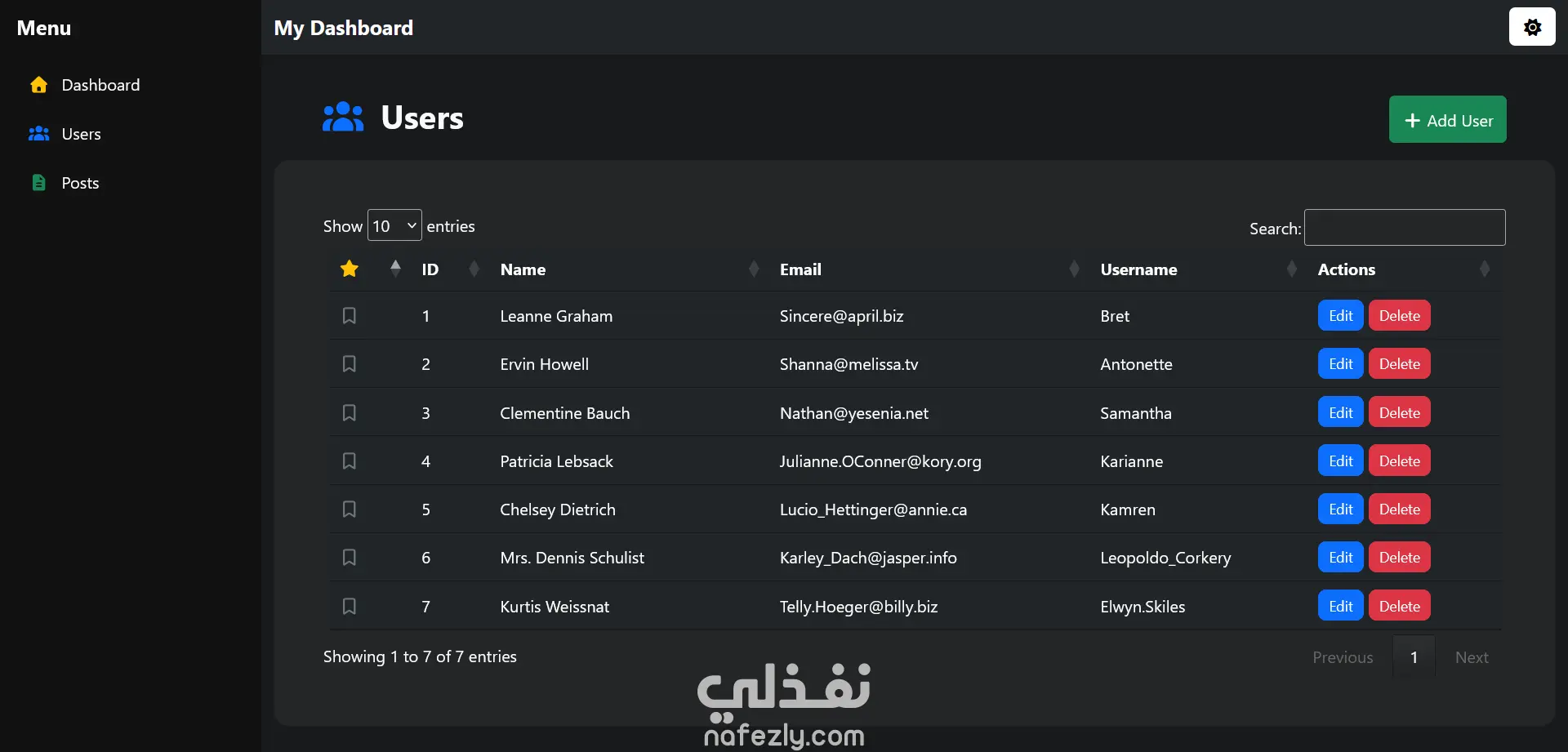 Fake API Integration: Uses JSONPlaceholder to simulate live data fetching.