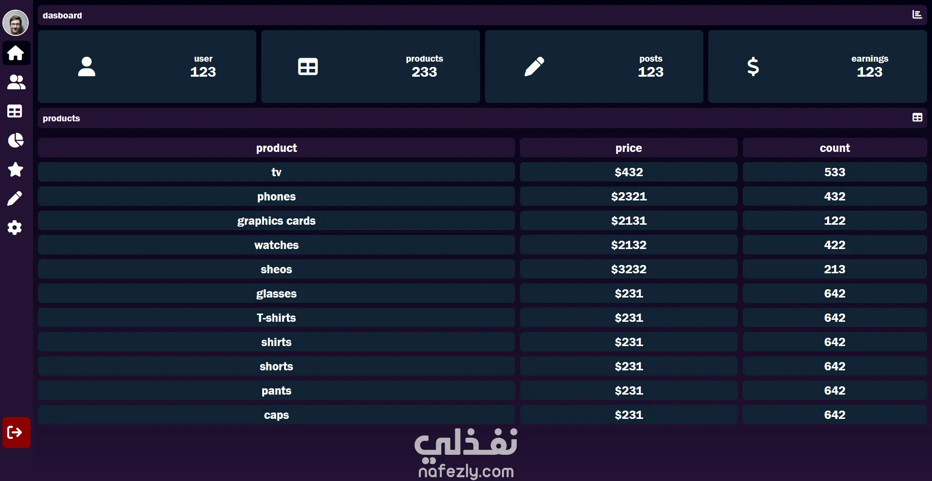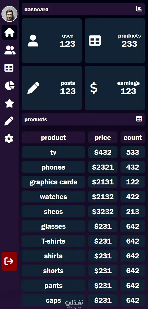 تصميم واجهة Dashboard احترافية لإدارة البيانات باستخدام HTML و CSS
