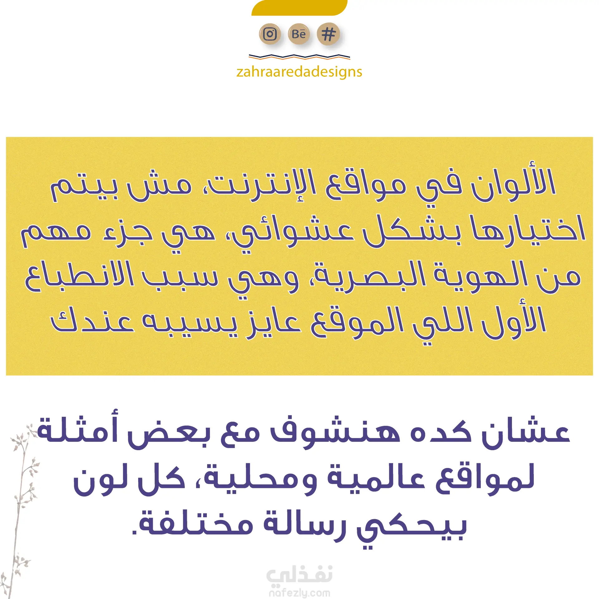 قمت بعمل كاروسيل يعرض أهمية مراعاة العامل النفسي عند اختيار وتطبيق الألوان في العلامات التجارية، وتحديداً المواقع الإلكترونية لتلك العلامات.