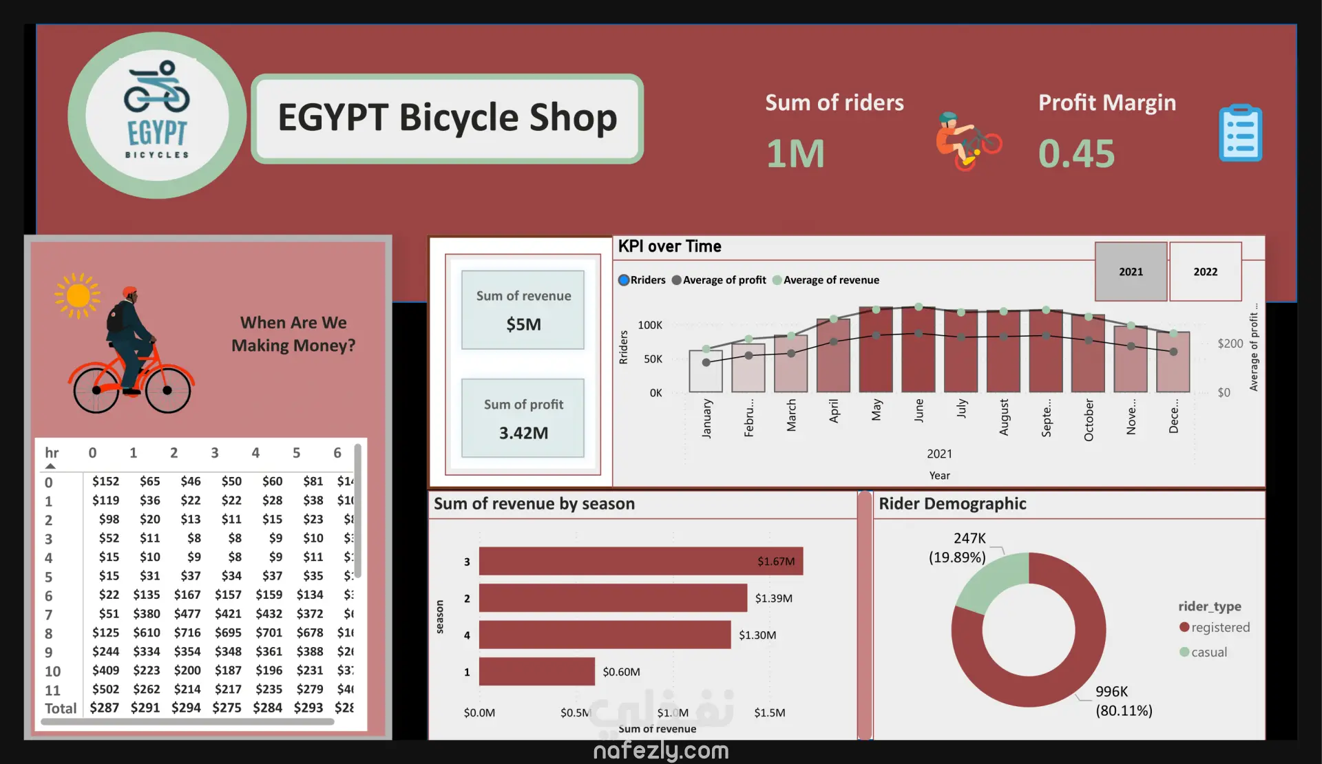 لوحة تحكم محل دراجات مصر تعرض مؤشرات الأداء الرئيسية لتتبع أداء المحل وتحليل بياناته:
