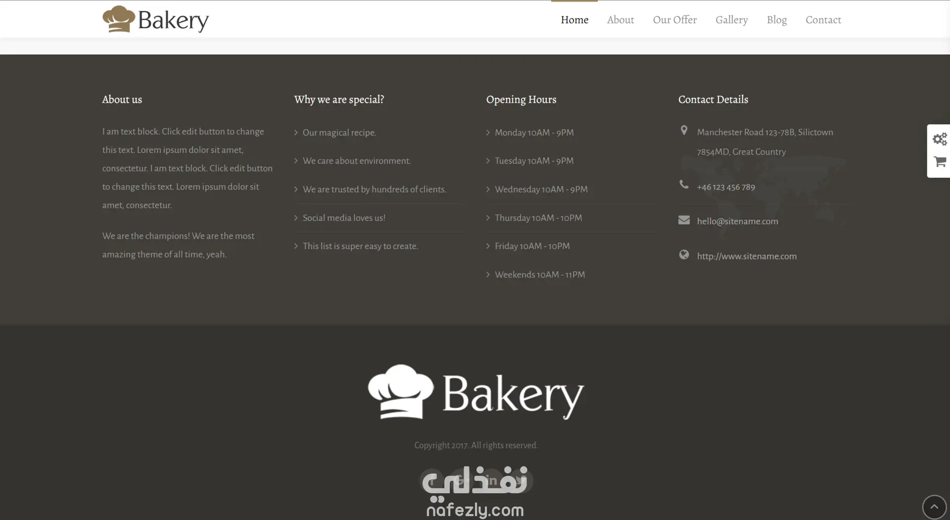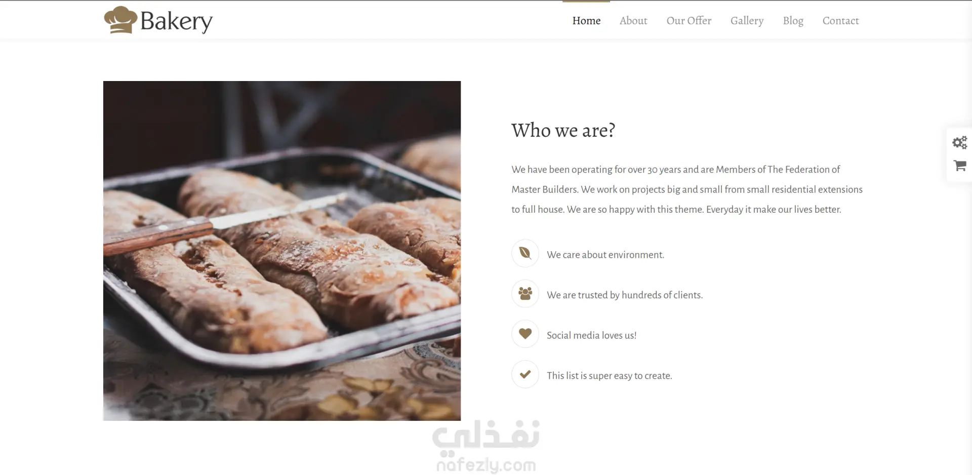 موقع تعريفي لمخبز (Bakery Website) تم تصميمه باستخدام قالب حديث بستايل أنيق يجمع بين البساطة والجاذبية. الموقع يحتوي على: واجهة رئيسية جذابة تعرض منتجات المخبز بشكل احترافي. أقسام مخصصة للمنتجات، العروض، وقصة العلامة التجارية. تصميم متجاوب (Responsive Design) يعمل بسلاسة على جميع الأجهزة. تجربة مستخدم سلسة بفضل الاهتمام بالتفاصيل البصرية والتنظيم الواضح. الهدف من الموقع هو إبراز الهوية البصرية للمخبز بطريقة عصرية، وجذب العملاء من خلال عرض منتجاته بشكل مميز.