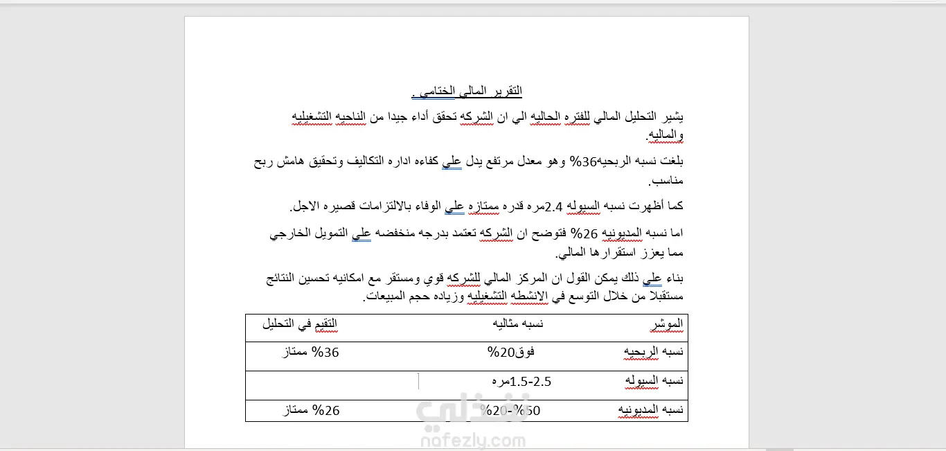 اعداد تقرير وتحليل مالي احترافي شامل بالارقام والنسب