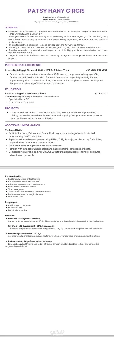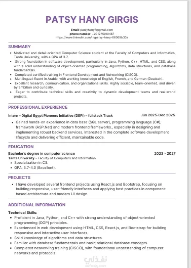 كتابة السيرة الذاتية بلغة احترافية وواضحة (بالعربية أو الإنجليزية).