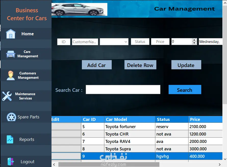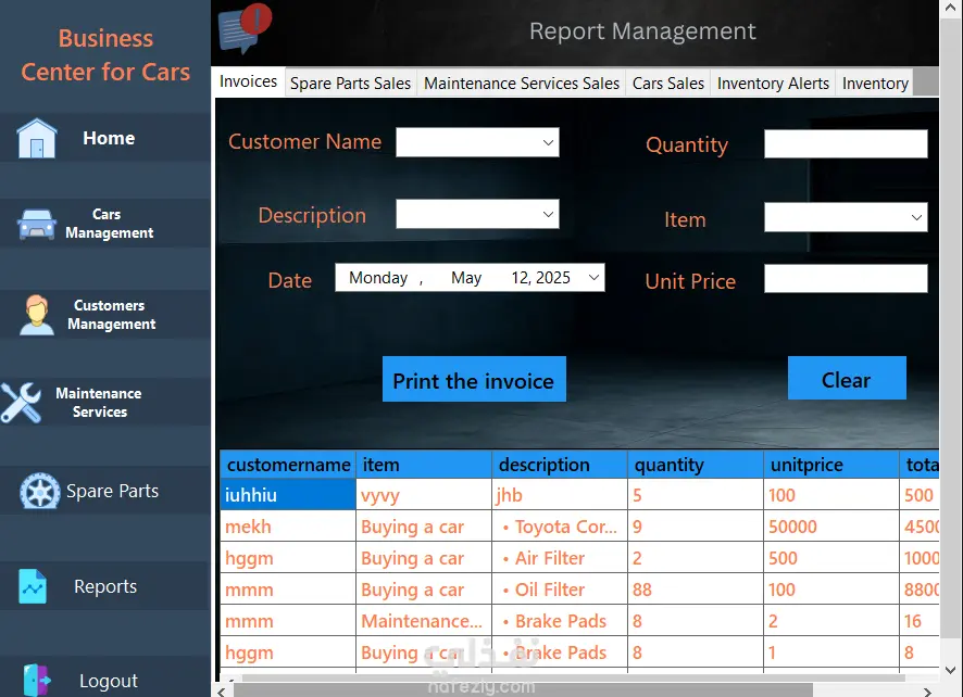 اسم المشروع: نظام إدارة مركز أعمال السيارات وصف المشروع: يهدف هذا المشروع إلى تصميم نموذج قاعدة بيانات متكامل لإدارة عمليات مركز أعمال خاص ببيع وصيانة السيارات. يشمل النظام التعامل مع طلبات العملاء لشراء السيارات، إنشاء الفواتير، إدارة الموردين، تتبع قطع الغيار، والتعاملات المالية سواء من خلال المخزن أو البنك. تم تصميم قاعدة البيانات باستخدام مخطط الكيانات والعلاقات (ERD) لتحديد الكيانات المطلوبة، وخصائصها، والعلاقات التي تربط بينها مع مراعاة القيود والارتباطات المنطقية. وقد تم تنفيذ النموذج باستخدام برنامج Visual Paradigm. الوظائف الرئيسية المغطاة في التصميم: إدارة العملاء (Customer Management) تخزين بيانات العملاء، معلومات الاتصال، وتاريخ التسجيل. تتبع السيارات والفواتير المرتبطة بكل عميل. طلبات السيارات والمخزون (Car Requests & Inventory) تخزين معلومات تفصيلية عن السيارة مثل الموديل، الماركة، السعر، ورقم اللوحة. ربط كل سيارة بالعميل الذي طلبها. نظام الفواتير (Invoice System) إنشاء فواتير خاصة بعمليات شراء السيارات. ربط الفاتورة بكل من العميل والسيارة. إدارة مركز الأعمال (Business Center Management) إدارة بيانات المركز مثل الاسم والموقع. الربط بين عمليات المركز والموردين والفواتير. إدارة الموردين وقطع الغيار (Supplier & Spare Parts Management) تخزين بيانات الموردين وربطهم بقطع الغيار المقدمة. تتبع حالة قطع الغيار والمخزون المرتبط بها.
