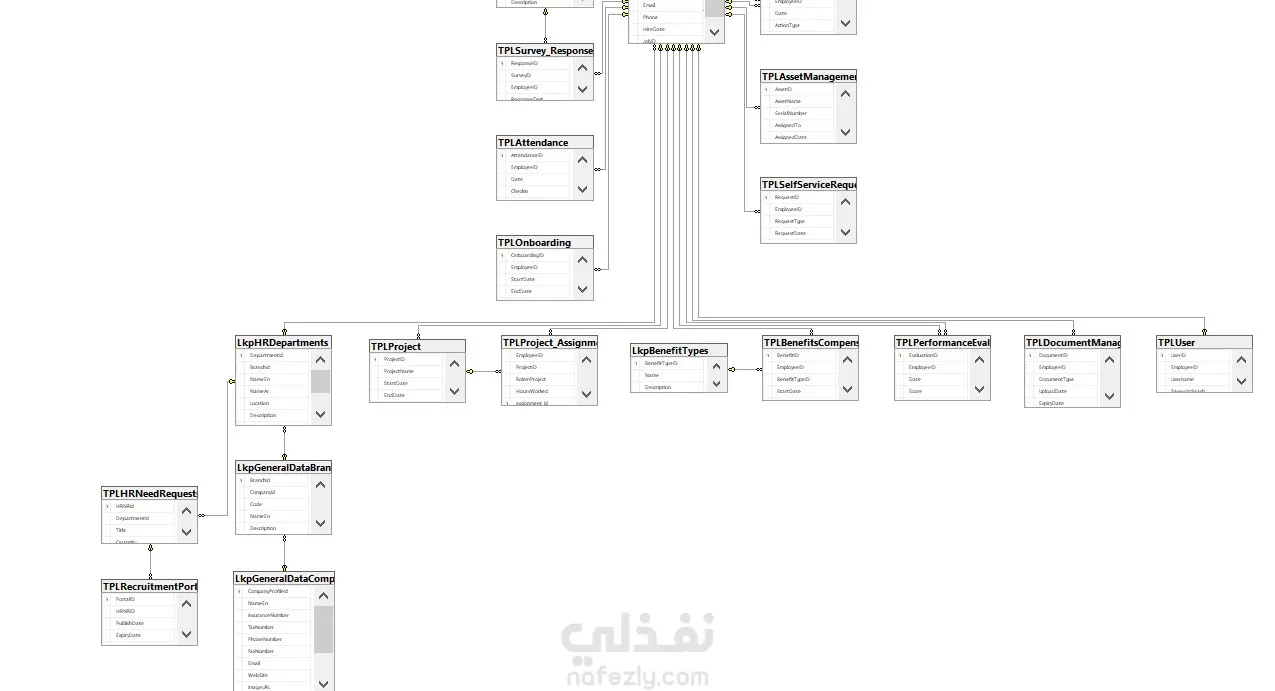 مشروع متكامل لإدارة جميع العمليات الخاصة بقسم الموارد البشرية داخل أي مؤسسة. يشمل النظام إدارة كل ما يتعلق بالموظفين من حيث بياناتهم وحضورهم وأجورهم. المكونات الأساسية: الموظفون (Employees): يحتوي على جميع بيانات العاملين. الحضور والانصراف (Attendance): لتتبع مواعيد العمل وساعات الغياب. المرتبات (Salaries): لإدارة الرواتب والمكافآت والخصومات. الأقسام (Departments): لتنظيم العاملين حسب الإدارة أو القسم. العقود والإجازات (Contracts & Leaves): لتسجيل كافة تفاصيل العمل والإجازات. المخرجات: تصميم ERD كامل للنظام يوضح العلاقات بين الجداول. بناء Database Schema باستخدام SQL Server. إنشاء العلاقات والقيود. كتابة استعلامات (Queries) وتقارير لتسهيل إدارة الموارد البشرية.