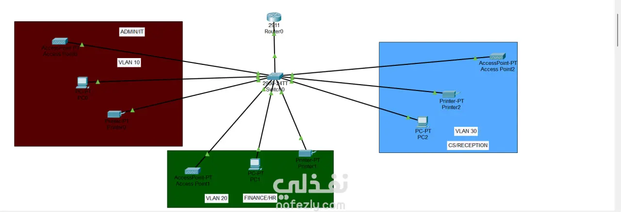 مشروع تصميم وتنفيذ شبكة مكتب (SOHO) مُقسَّمة