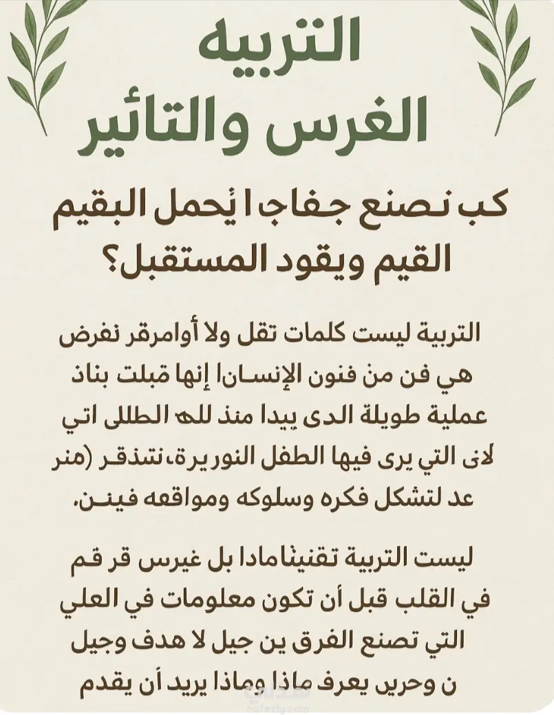 التربية ليست كلمات تُقال ولا أوامر تُفرض، بل هي فنّ من فنون بناء الإنسان.