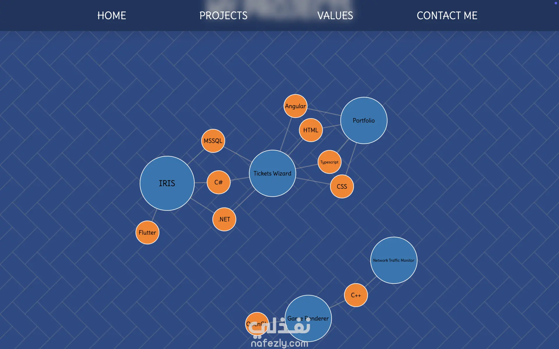 يعكس هذا الموقع شخصيتي ويعرض مشاريعي والمهارات المستخدمة في كل مشروع بشكل مميز من الخصائص المهمة للمشروع: ١- انيميشن سلس وجذاب لكل اجزاء الموقع ٢- تصميم الموقع متوافق مع جميع الأجهزة لضمان تجربة سلسة على الكمبيوتر والموبايل ٣- استخدام تقنية D3.js للربط بين المشاريع والمهارات المستخدمة بها وعرضها بشكل مرئي وتفاعلي على الموقع