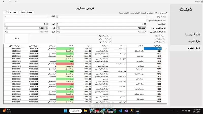 برنامج شيكاتك - لإدارة الشيكات للبنوك والشركات المصرية والعربية.
