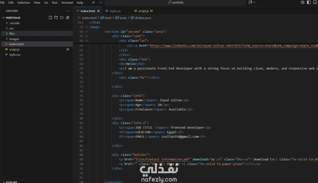 هذا البورتفوليو الشخصي يقدّم نبذة عني وعن المهارات التي أمتلكها في مجال تطوير الويب. يحتوي الموقع على أقسام تعرض معلوماتي الشخصية، مهاراتي التقنية، والمشاريع التي قمت بتنفيذها. تم تصميم البورتفوليو بطريقة بسيطة وجذابة لتُظهر قدراتي في التصميم والبرمجة بشكل احترافي. التقنيات المستخدمة: تم بناء البورتفوليو باستخدام HTML لبناء الهيكل العام للصفحة، وCSS لتنسيق التصميم وجعله متناسقًا وجذابًا، وJavaScript لإضافة التفاعلات والحركة داخل الموقع.