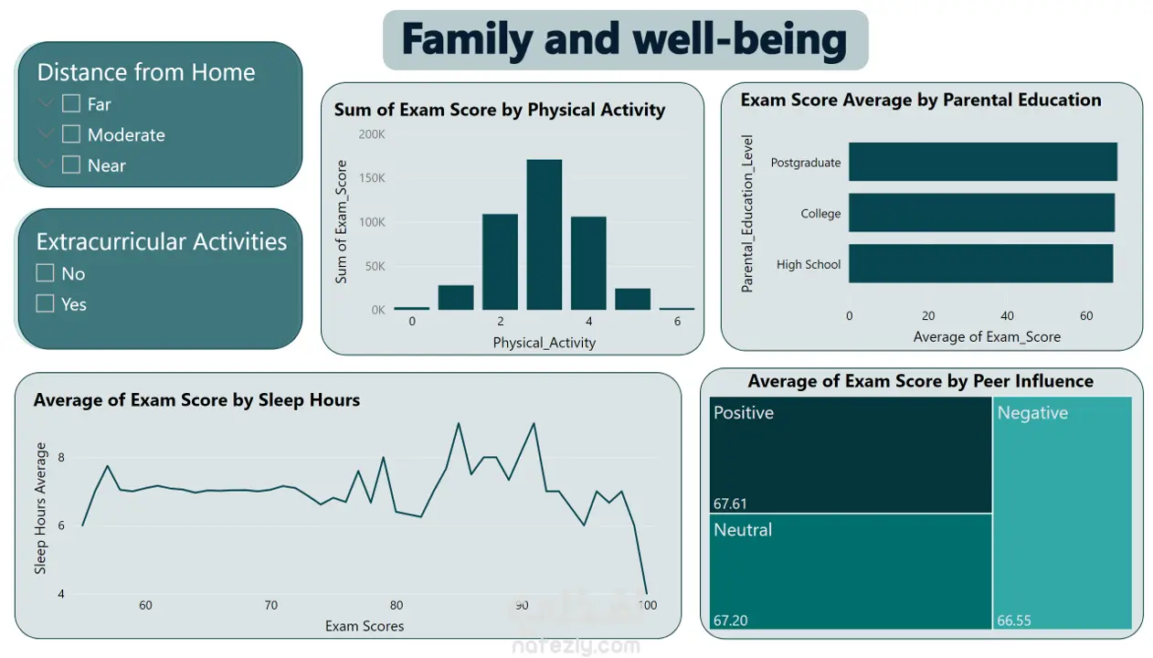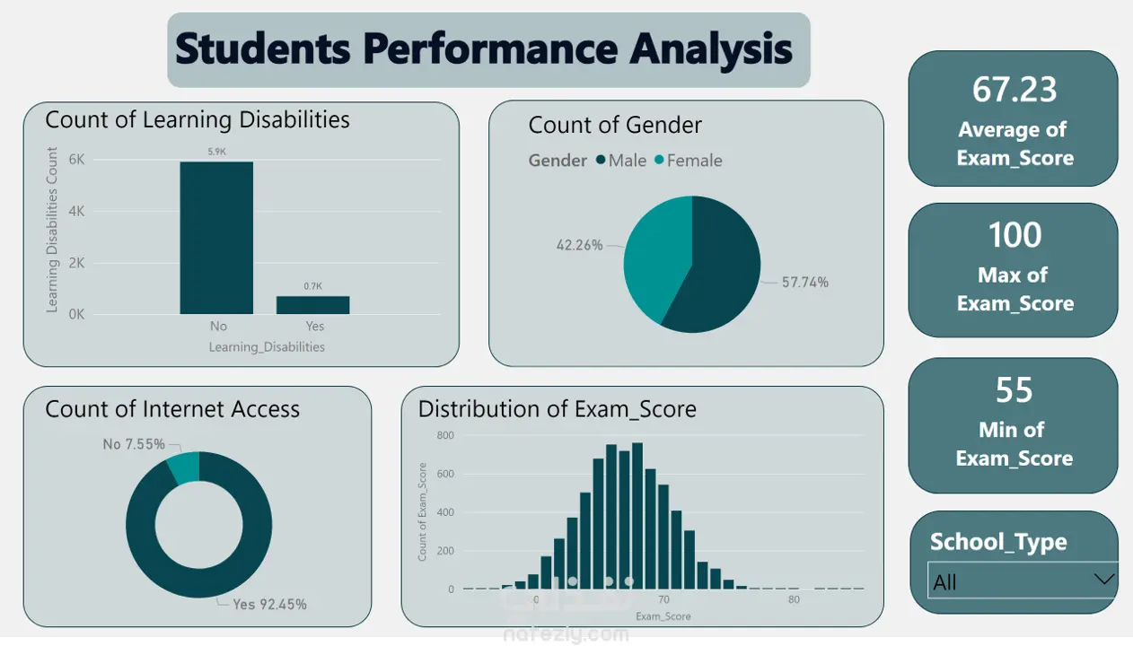 - الفكرة الرئيسة : في هذا المشروع قمتُ بتحليل بيانات درجات الطلاب لاكتشاف تأثير المدرسة والمنزل والأصدقاء على أداء الطالب الأكاديمي، مع التركيز على العوامل التي تسهم في تحسين أو إضعاف درجاته. - الأدوات المستخدمة : 1- استخدمت بايثون لاستكشاف ومعالجة البيانات باستخدام (numpy , pandas) وكذلك لبناء نموذج ذكاء اصطناعي لتوقع درجات الطلاب. 2- استخدمت SQL لعمل قصة تحكي مشكلات البيانات وما هي ابرز الأنماط. 3- استخدمت Power BI لعمل Dashboards تفاعلية تساعد في عرض النتائج بشكل بصري وواضح. - أهم الاستناجات : الحضور الدراسي وعدد ساعات المذاكرة من أهم العوامل الإيجابية التي تؤثر على الدرجات. المدرسة تلعب دورًا رئيسيًا من حيث جودة المعلم ومدى قربها من منزل الطالب. النوم السليم وممارسة الرياضة لهما أثر كبير على تحسين مستوى الطلاب الدراسي.