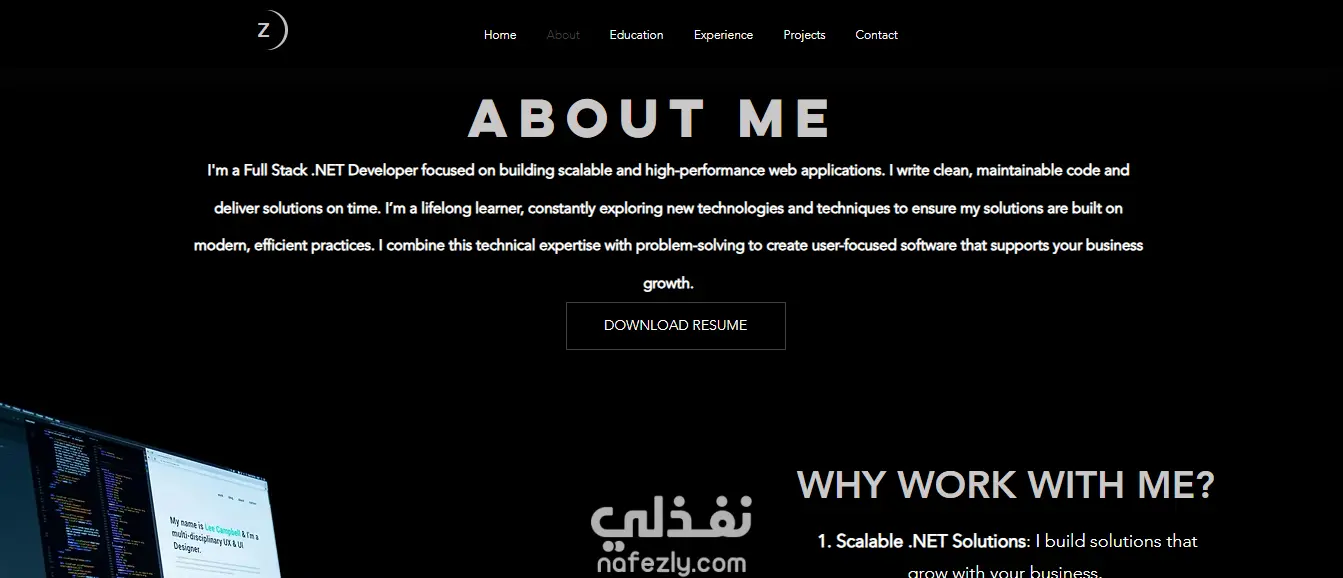 -تنظيم الأقسام (Home,About,Education,Experience,Projects,Contact) بشكل واضح وسهل التصفح