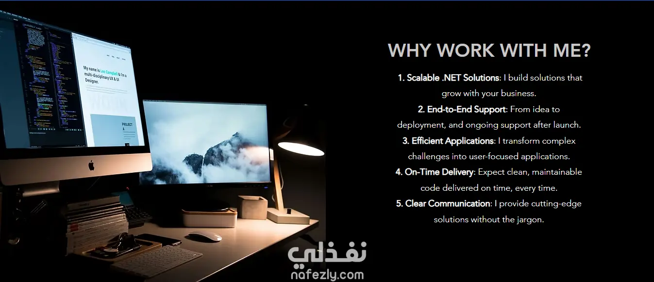 موقع شخصي احترافي يعرض الخبرات والمشاريع بشكل يعزز الانطباع الأول لدى أصحاب العمل والعملاء المحتملين.