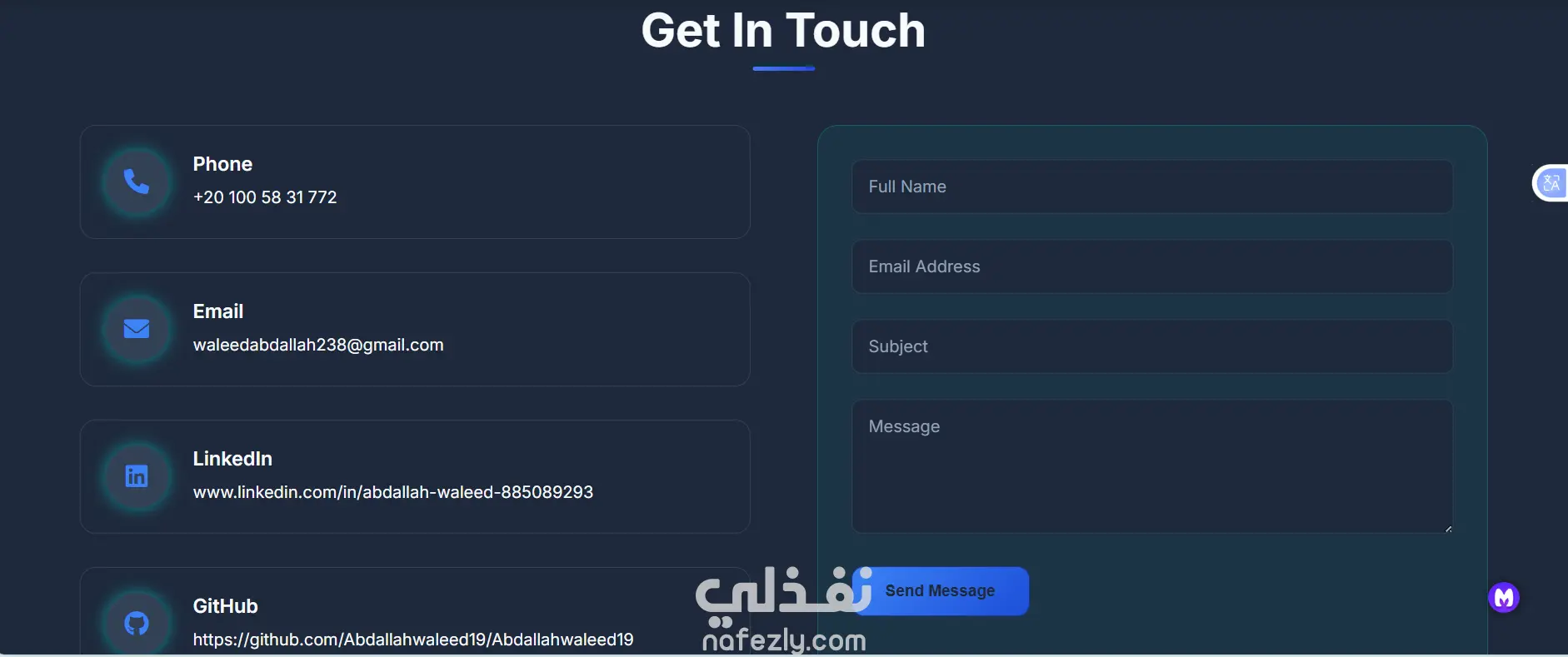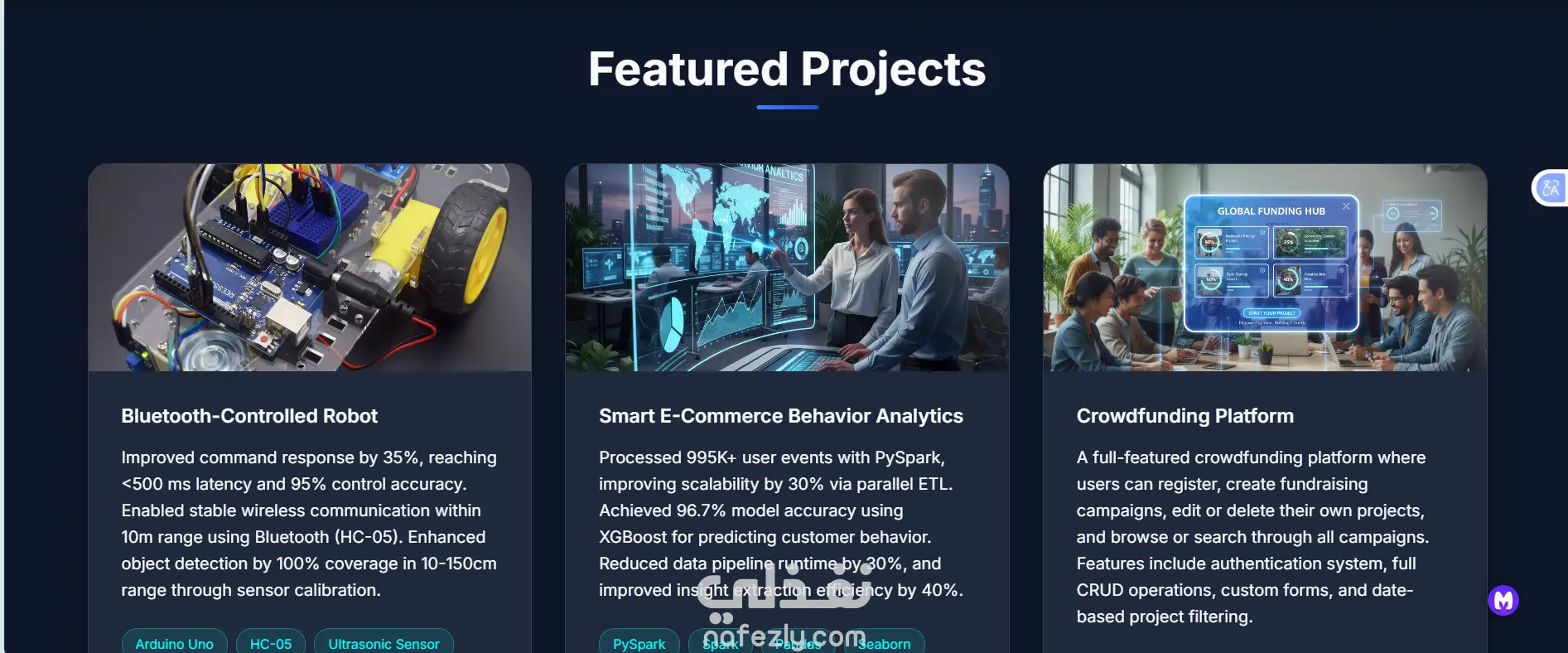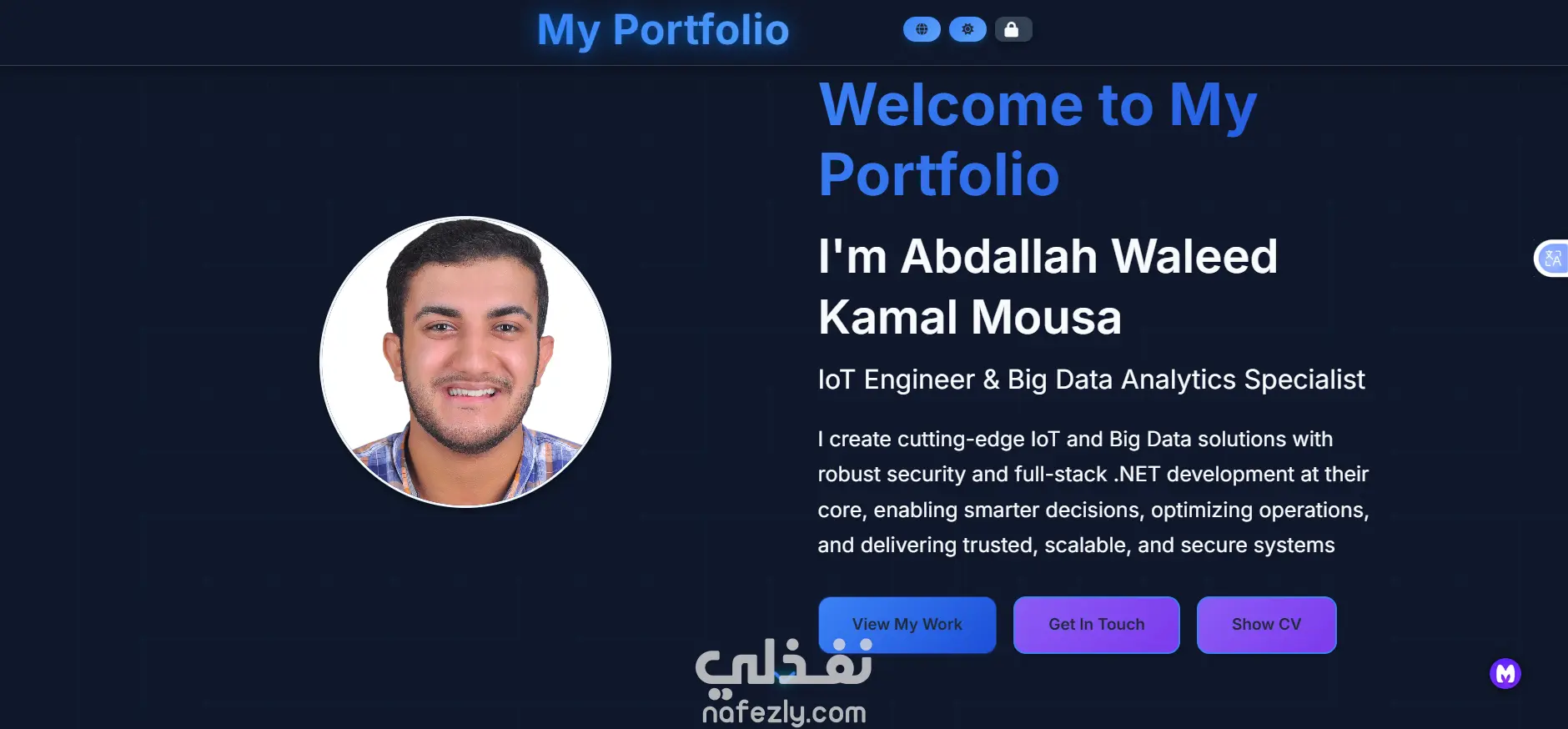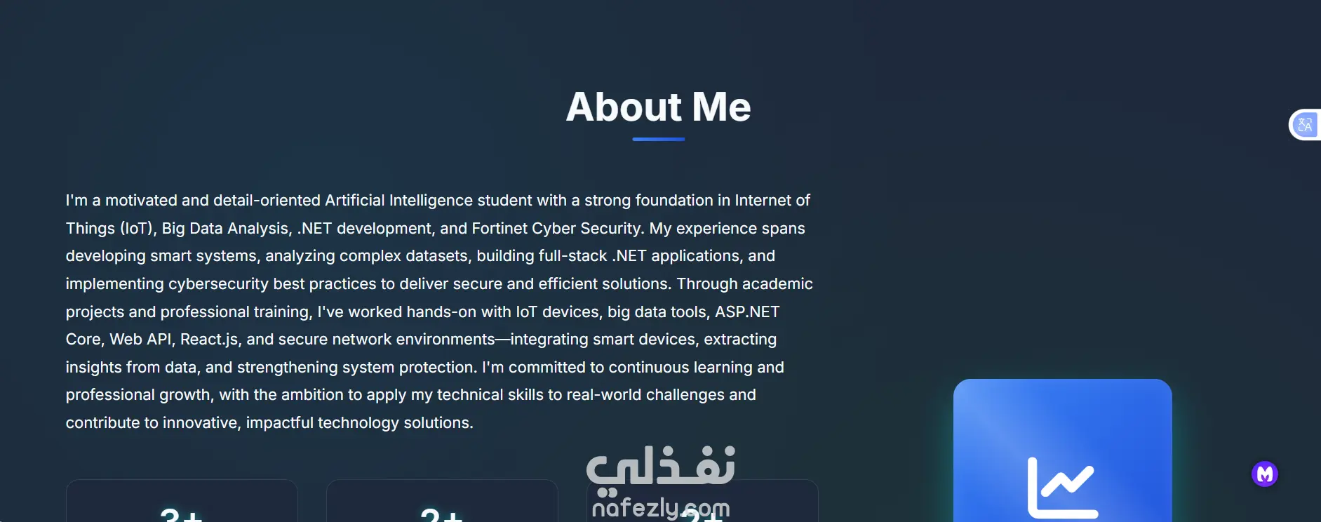 هذا المشروع عبارة عن تصميم وتطوير موقع إلكتروني شخصي متكامل، تم بناؤه ليكون بمثابة معرض رقمي احترافي يعرض خبراتي، مهاراتي، وأبرز المشاريع التي قمت بتنفيذها في مجال [اكتب تخصصك هنا، مثل: تطوير الويب، تصميم الجرافيك، الذكاء الاصطناعي، إلخ]. الهدف الأساسي من المشروع: إنشاء هوية رقمية فريدة ومنصة مركزية تسهل على أصحاب العمل والعملاء المحتملين استعراض أعمالي والتواصل معي بسهولة. أهم مميزات الموقع: تصميم عصري وجذاب: واجهة مستخدم نظيفة وحديثة تركز على عرض المحتوى بأفضل شكل ممكن. تجربة مستخدم سلسة (UX): تم تصميم الموقع ليكون سهل التصفح والتنقل بين أقسامه المختلفة. تصميم متجاوب (Responsive): يعمل الموقع بكفاءة ويتكيف مع جميع أحجام الشاشات، سواء كانت حواسيب مكتبية، أجهزة لوحية، أو هواتف ذكية. معرض أعمال ديناميكي: قسم خاص لعرض المشاريع، حيث يحتوي كل مشروع على وصف تفصيلي، والتقنيات المستخدمة، وصور، ورابط مباشر للمشروع إن وجد. صفحة "عني" (About): صفحة تعريفية توضح مسيرتي المهنية، أهدافي، وأهم المهارات التي أمتلكها. نموذج تواصل (Contact Form): طريقة سهلة ومباشرة للزوار والعملاء المحتملين لإرسال رسائل واستفسارات. التقنيات والأدوات المستخدمة: للواجهة الأمامية (Frontend): [مثال: HTML5, CSS3, JavaScript, React.js] للواجهة الخلفية (Backend): [مثال: Node.js لتشغيل نموذج التواصل] للتصميم (Design): [مثال: Figma, Adobe XD] أدوات أخرى: [مثال: Git, GitHub] هذا الموقع لا يعرض أعمالي فقط، بل يمثل أيضًا تطبيقًا عمليًا لمهاراتي في التصميم والتطوير