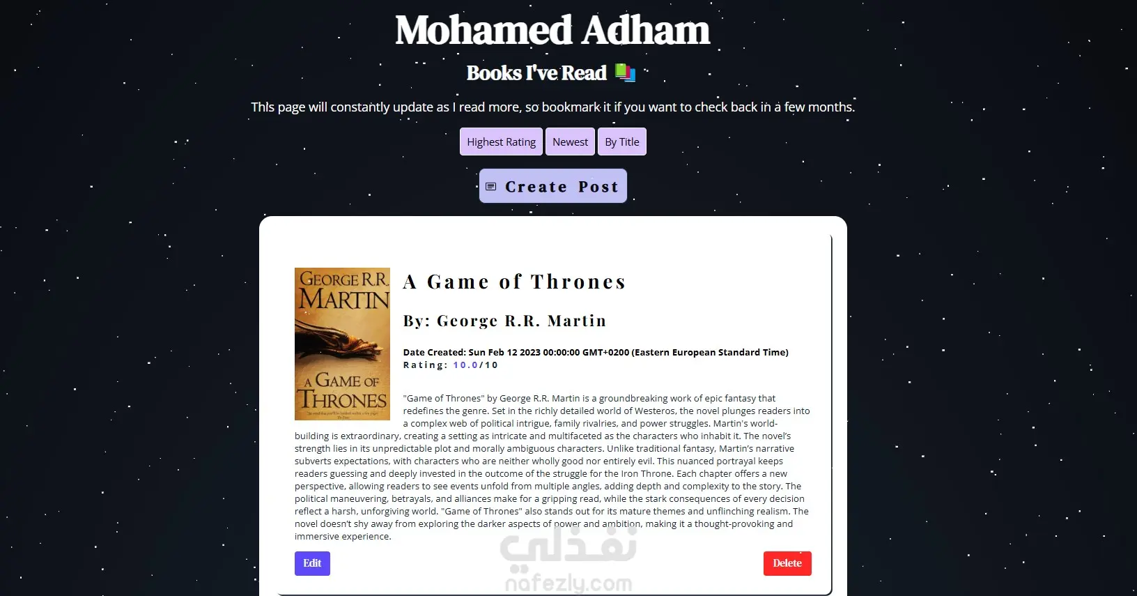 منصّة ملاحظات مخصصة لعشّاق القراءة، تتيح إضافة الكتب، كتابة المراجعات، حفظ الاقتباسات، وتنظيم الأفكار بسهولة. يعتمد على Node.js مع EJS لعرض الواجهات، وقاعدة بيانات PostgreSQL لتخزين المحتوى بشكل آمن ومنظّم.